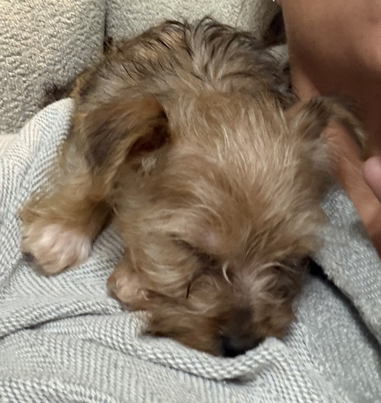 She would much rather be with her people than do just about anything - even eat! She'll jump and dance at your feet until you pick her up because being carried is her absolute favorite. Potty training is a work in progress (the freezing ground is no match for her tiny feet), and she'd much rather be cuddling than running around outside.