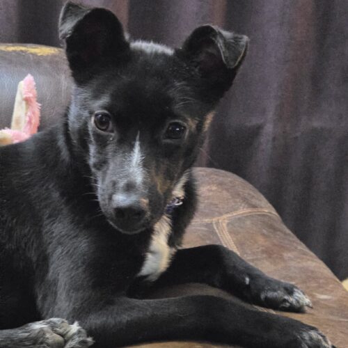 Hi, I'm Eliza. I was picked up as a stray and taken to a shelter. Now ARPO is helping me find a permanent home. I can be a little timid in new situations, but once I'm comfortable I'm a super sweet girl who does great with dogs, cats, and people of all ages. My breed mix is anyone's guess, but there's probably some terrier of some kind in there. I look like a puppy, but I am about three years old and weigh around 20 pounds. I'm spayed, microchipped, current on my shots, and HW negative. I am crate trained and working on housebreaking. If you're interested in meeting me please fill out an application and my friends with ARPO will be in touch!