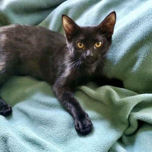 Achoo is a sweet, spunky little adventurer ready to leap into your life! She loves cozy blankets, soaring after feather wands, and curling up for snuggles. Achoo is bonded with her best friend Blinken, a sweet blind kitten who’s never far behind her. They play, cuddle, and comfort each other constantly. Achoo is food-motivated, full of love, and eager to share her heart—and Blinken's—with you.
