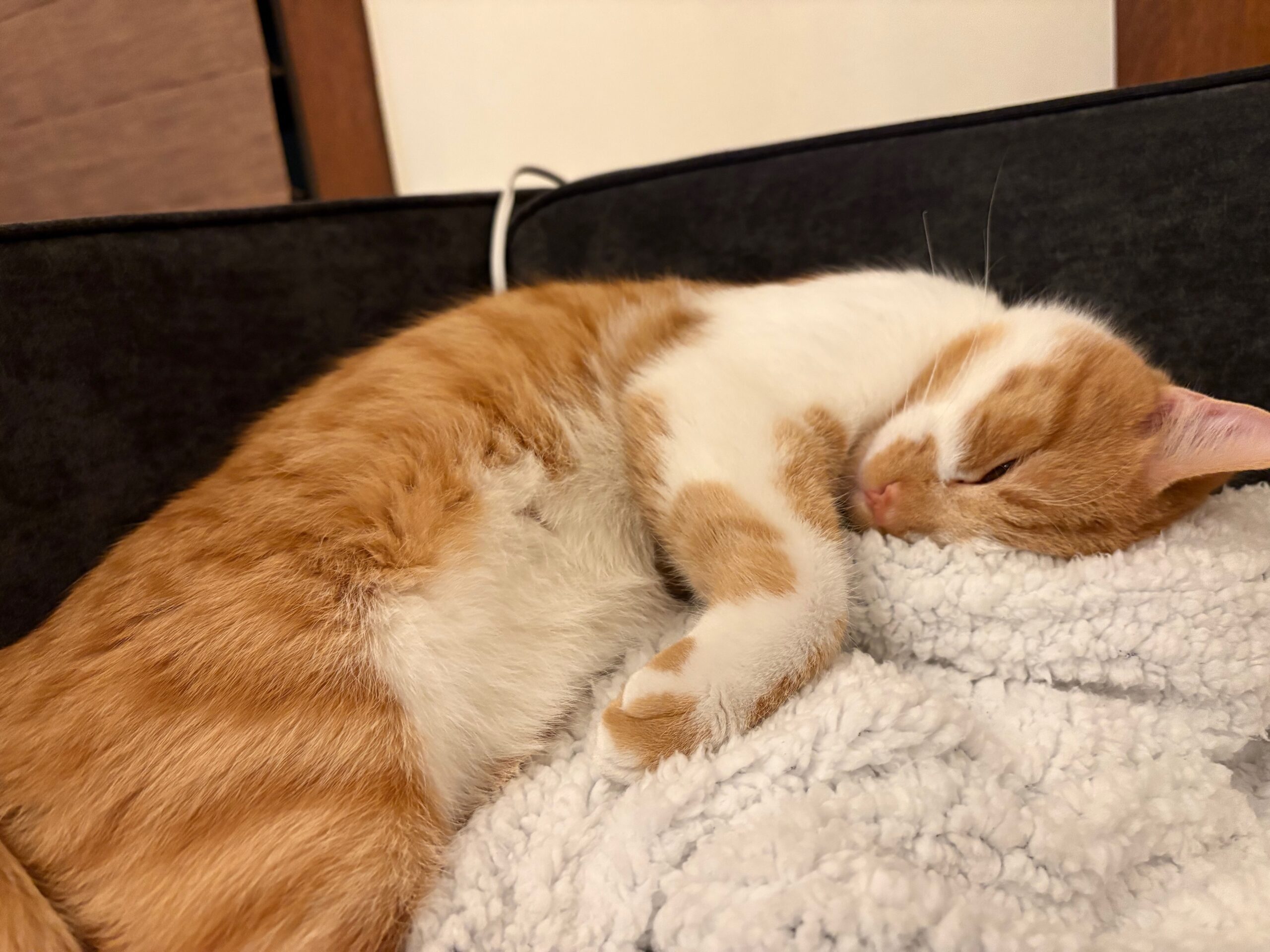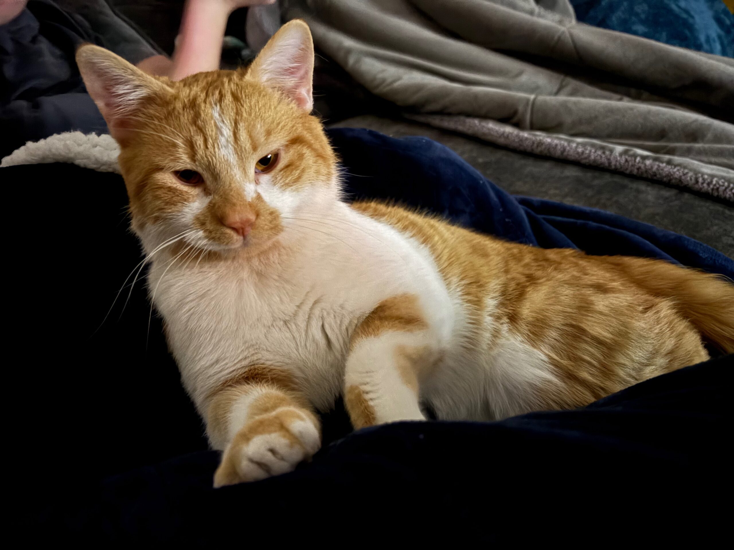 Bubbles is wonderfully gentle with children and thrives in a home where he can be included in the action. When it’s cuddle time, he’s all in, happily settling into your lap or snuggling close. When it’s playtime, he’s just as enthusiastic. And if he has an opinion—or a request—he’ll let you know with an expressive little meow. He’s a smart, communicative cat who forms strong bonds with his people.