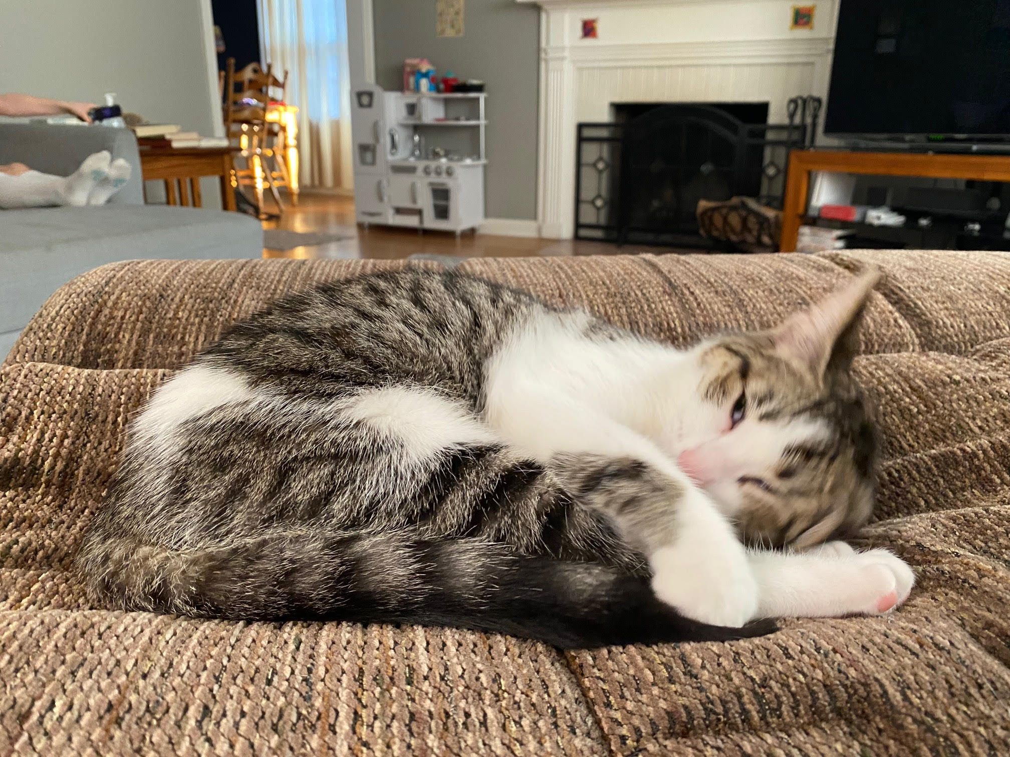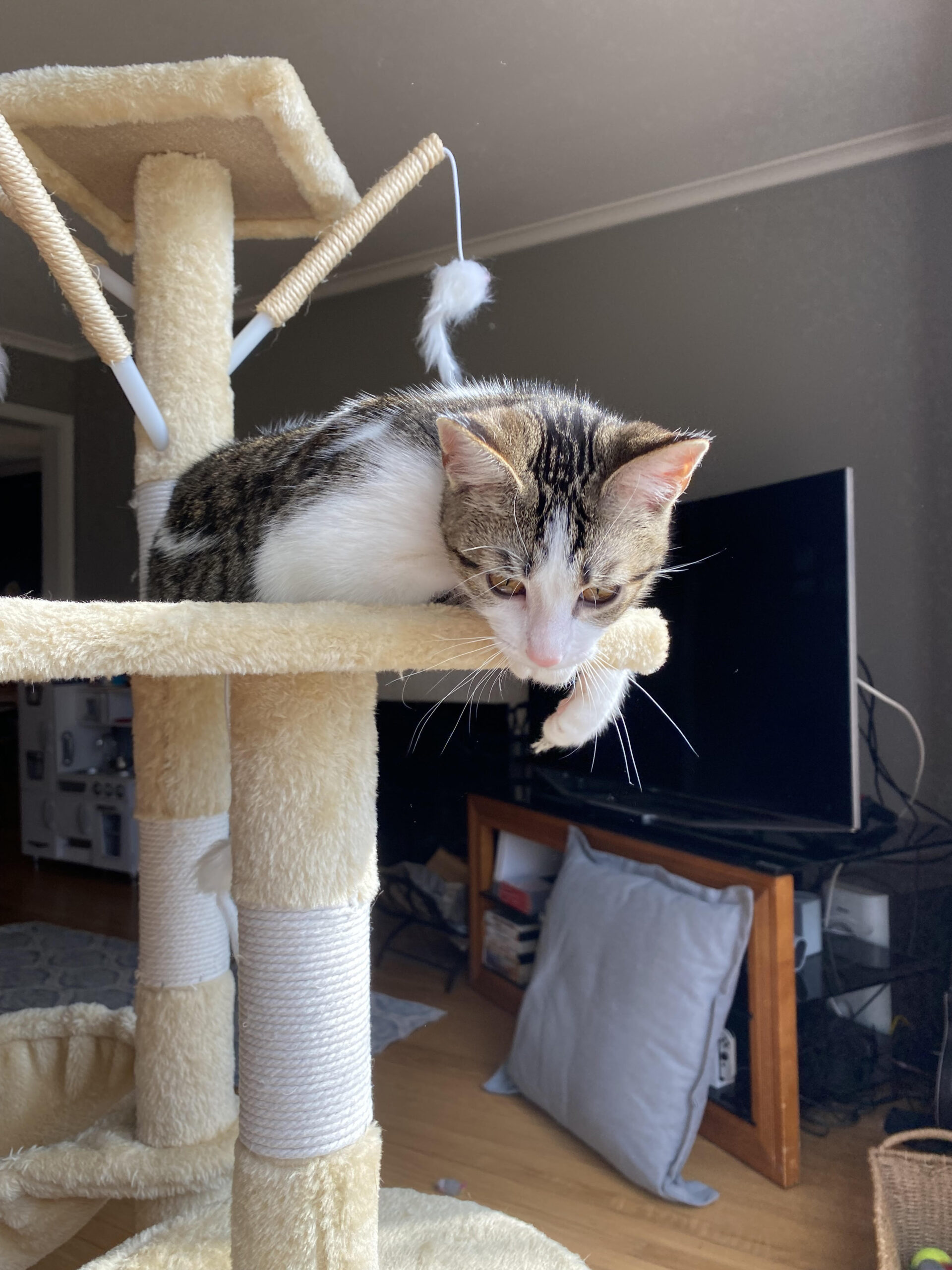 Hello, my name is Butterscotch. My mama brought me to the porch of a kind human when I was a little kitten. They brought me inside with my sisters, where I have lived since then. I am a young, playful kitten with lots of energy. I need a home with another young cat/kitten so I can continue my playful lifestyle. I am a little shy at first, but I come out of my shell with some patience and love. I am litterbox trained, up to date on my vaccines, microchipped and spayed.