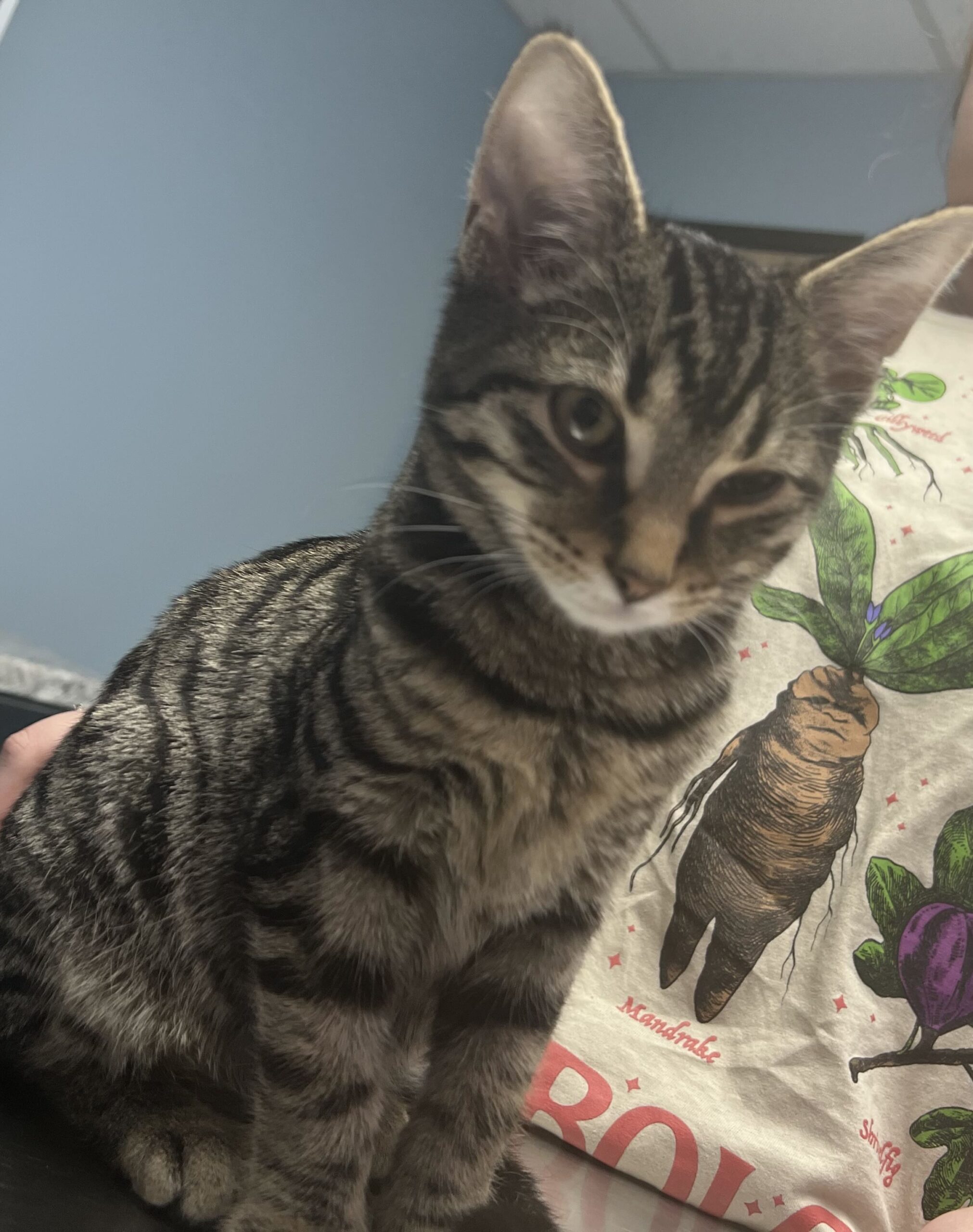 Meet Charlie who is a whirlwind of energy and personality! This wild little kitten is always on the move — chasing toys, pouncing on shadows, and turning everything into a game. He is full of kitten chaos in the best possible way and will keep you laughing with his silly antics.