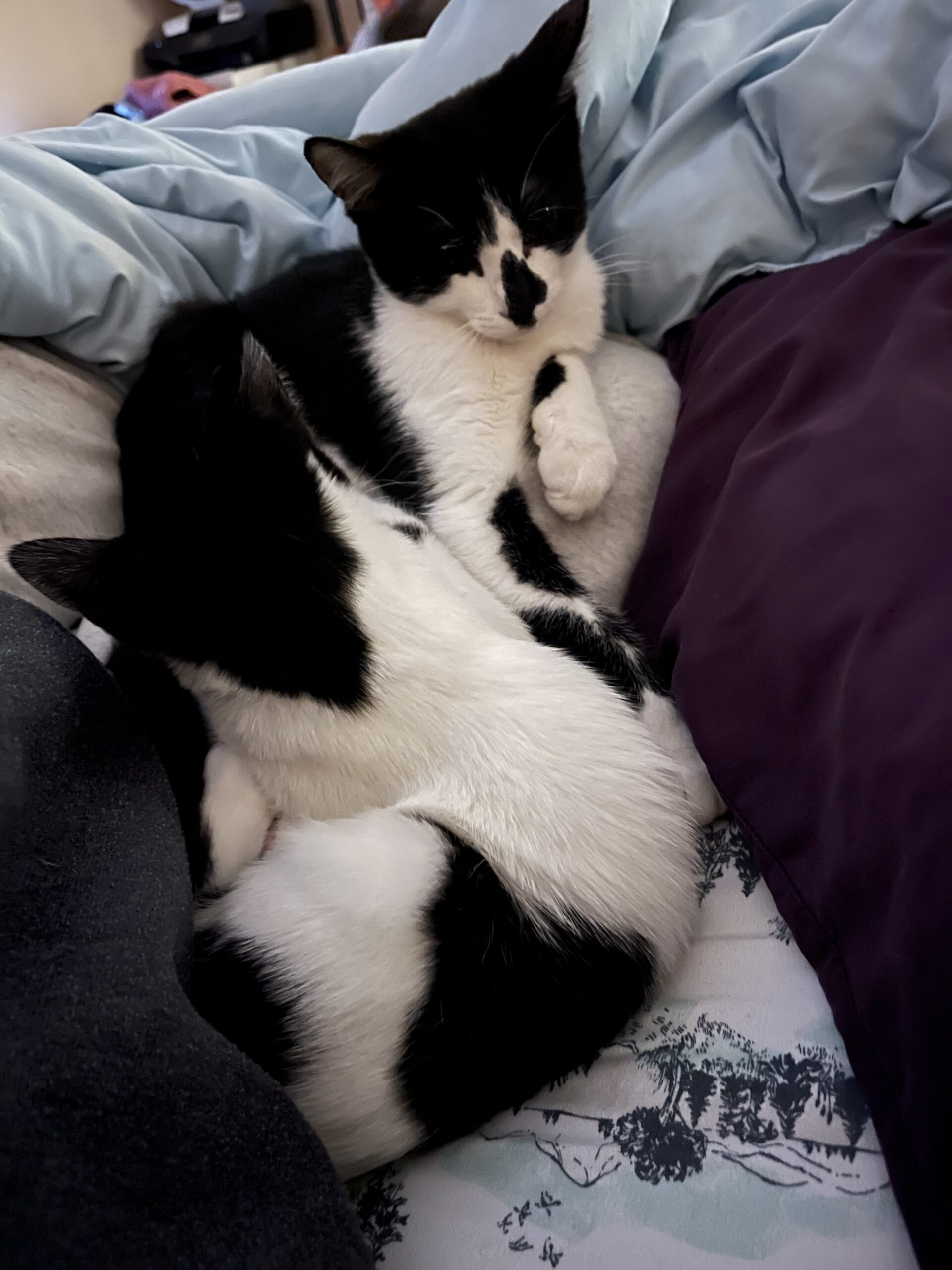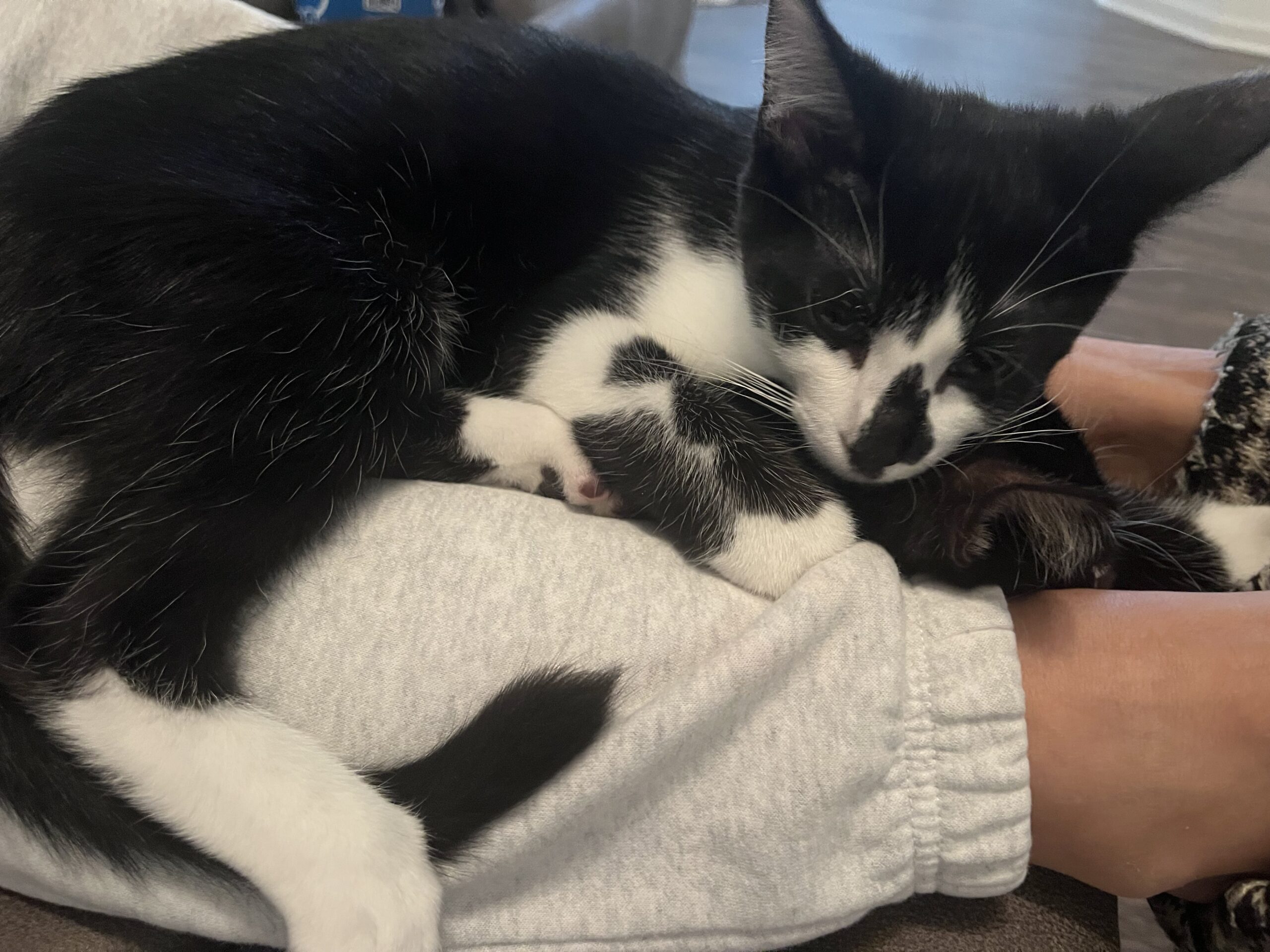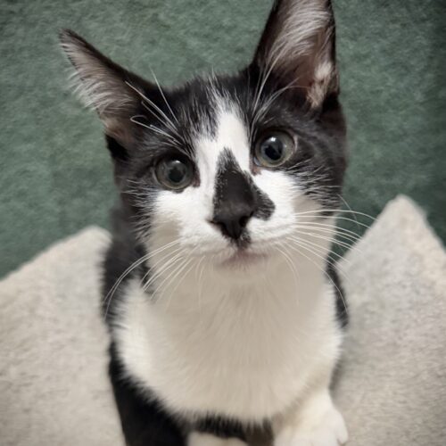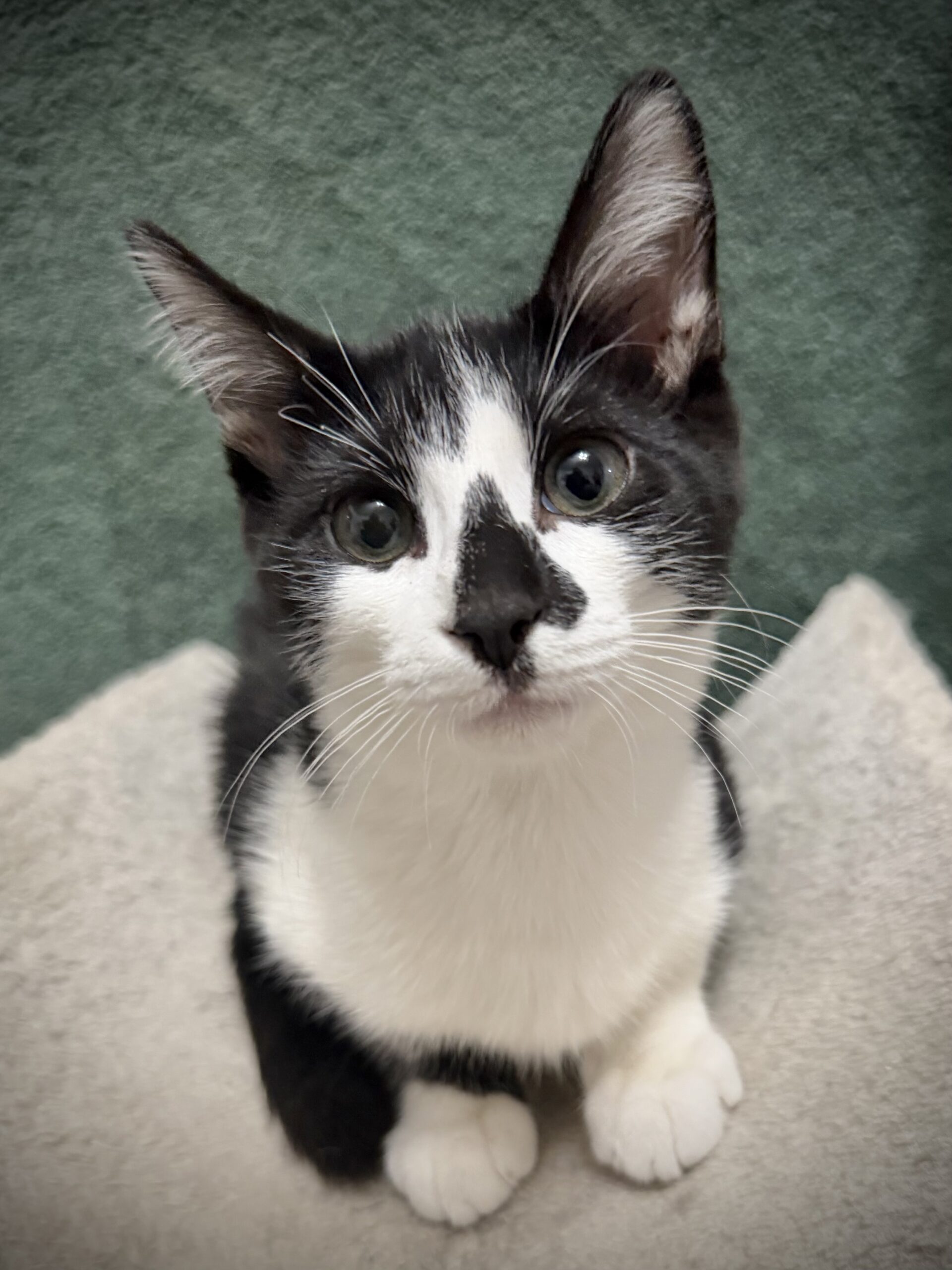 Cosmic Crisp is an all-around perfect kitten. He and his siblings were rescued from a crawlspace and have thrived in foster care. Cosmic greets you at the door, loves cuddles and attention, gets along wonderfully with his siblings, and even adores the family dogs. He's perfectly litter trained and uses his scratching post like a pro.
