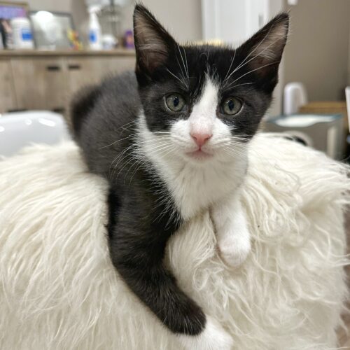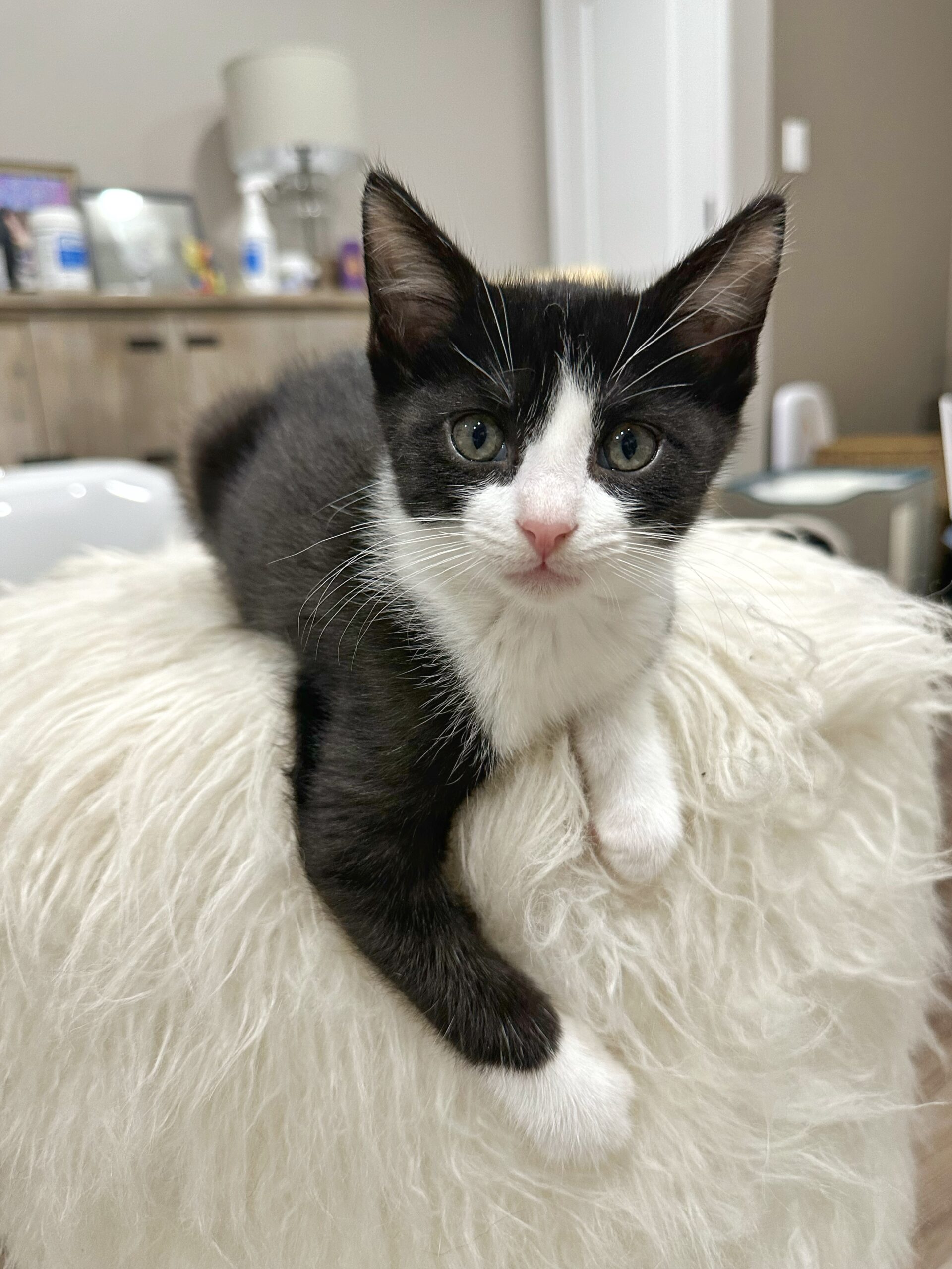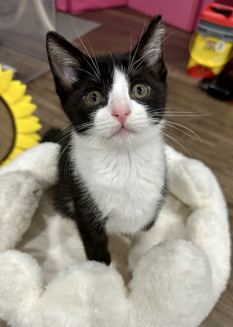 Meet Dopey, the gentle sweetheart of the Snow White & Seven Dwarfs crew! Despite his name, this black-and-white cutie is anything but dopey—he’s a soft-natured, easygoing kitten who loves to purr and cuddle. With his calm and affectionate personality, Dopey is happiest when being held close or lounging in the hammock after a good play session.