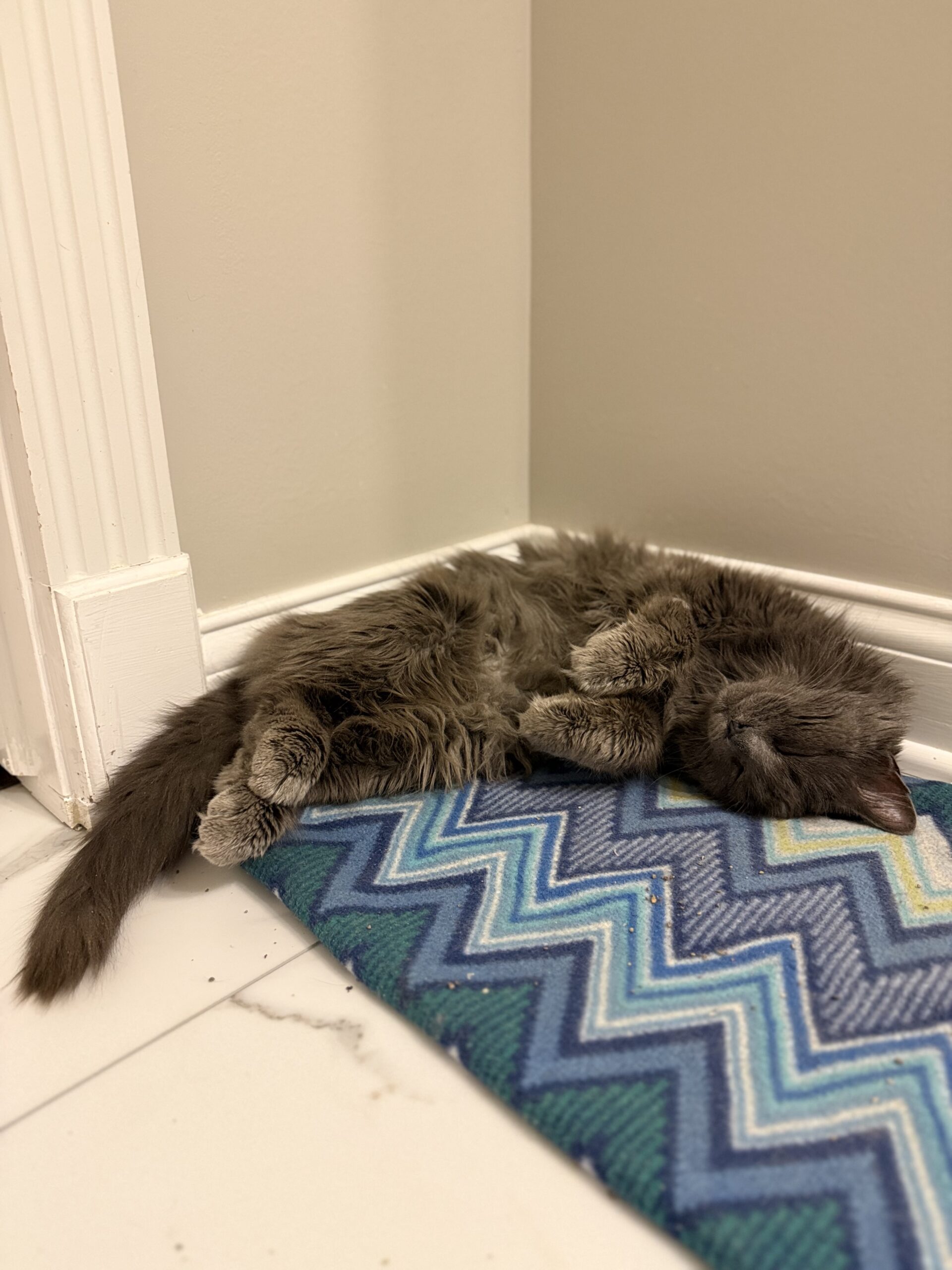 Her long fur has been through a lot, but after saying goodbye to painful mats, she’s been loving her daily brushing sessions. Keeping her coat soft and fresh is now part of her royal routine.