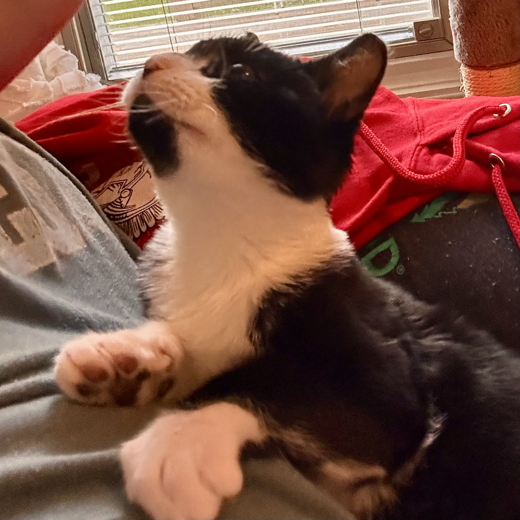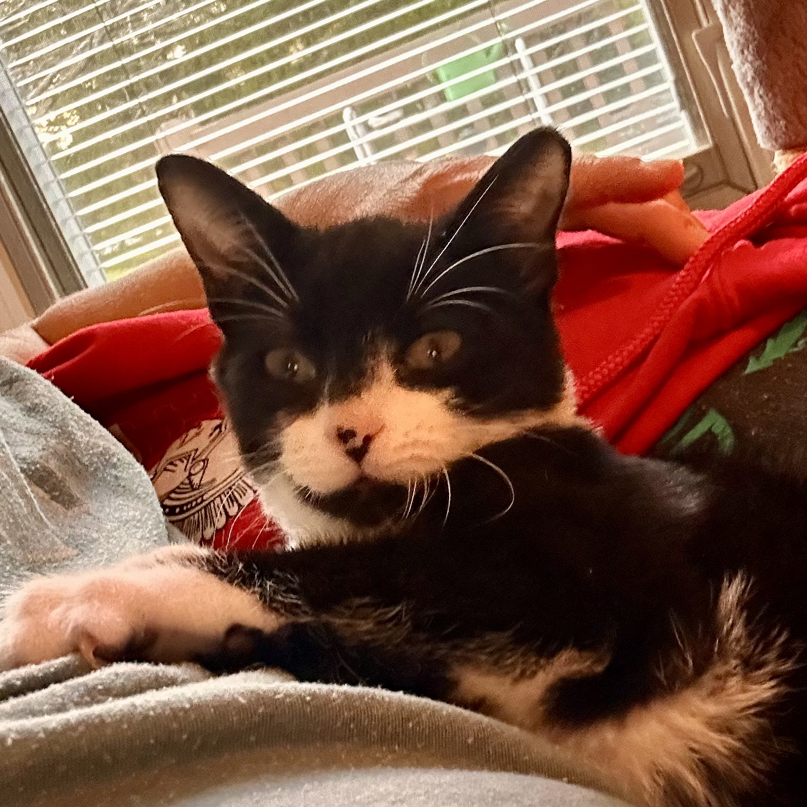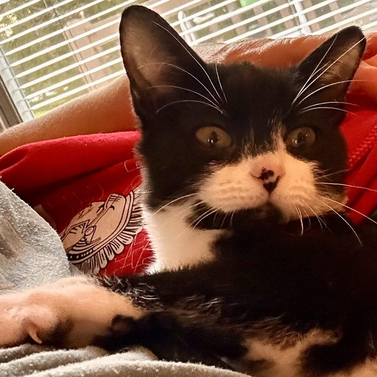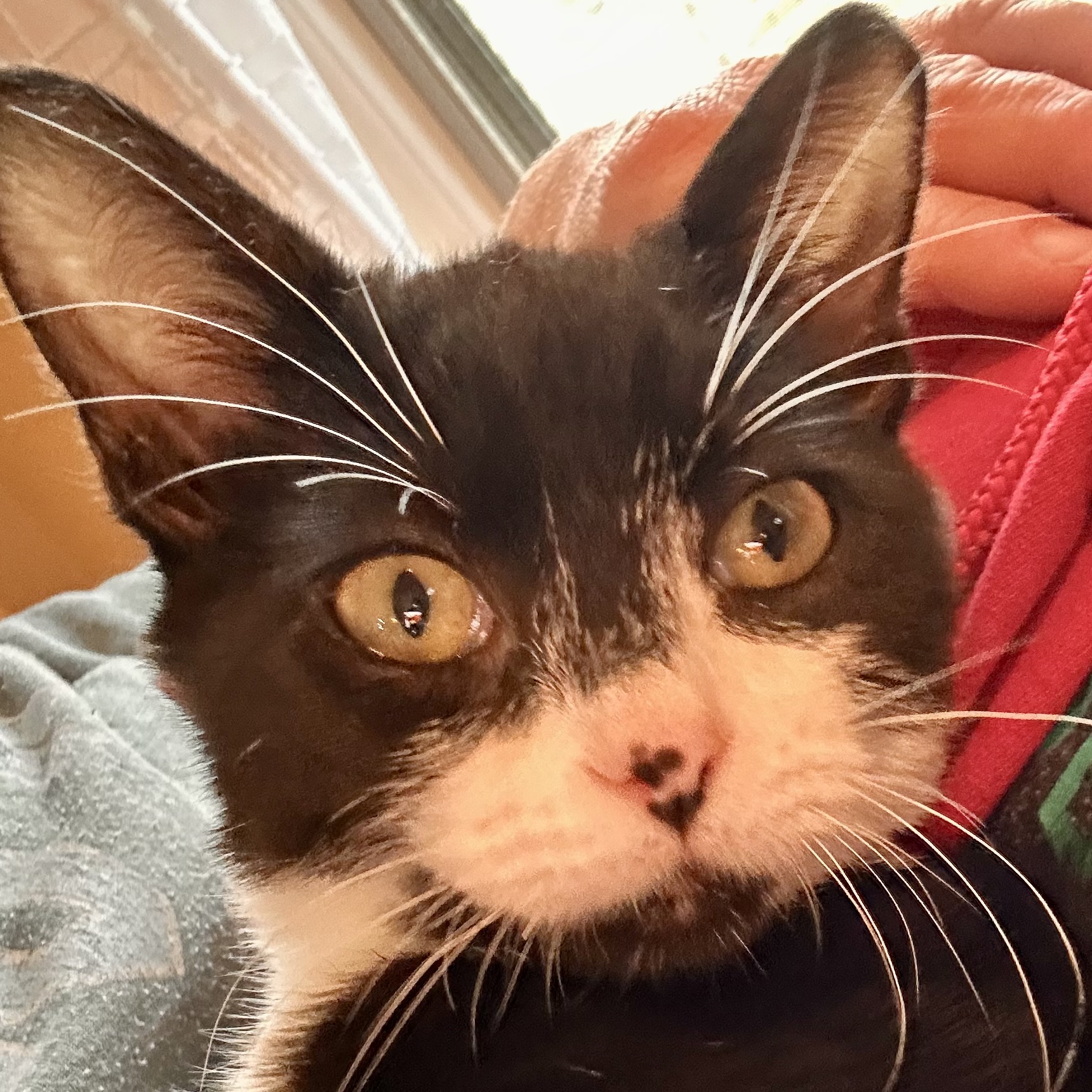 Fettuccine is a petite, sweet, and playful little tuxedo kitten with striking black and white markings and a mask that makes him look just like Batman. He’s full of personality, curious about the world around him, and always ready for a fun play session. When playtime is over, he’s happy to curl up for snuggles and show off his softer side. Fettuccine would love to find a forever home where he can continue his adventures, hopefully with one of his siblings who are also available for adoption.