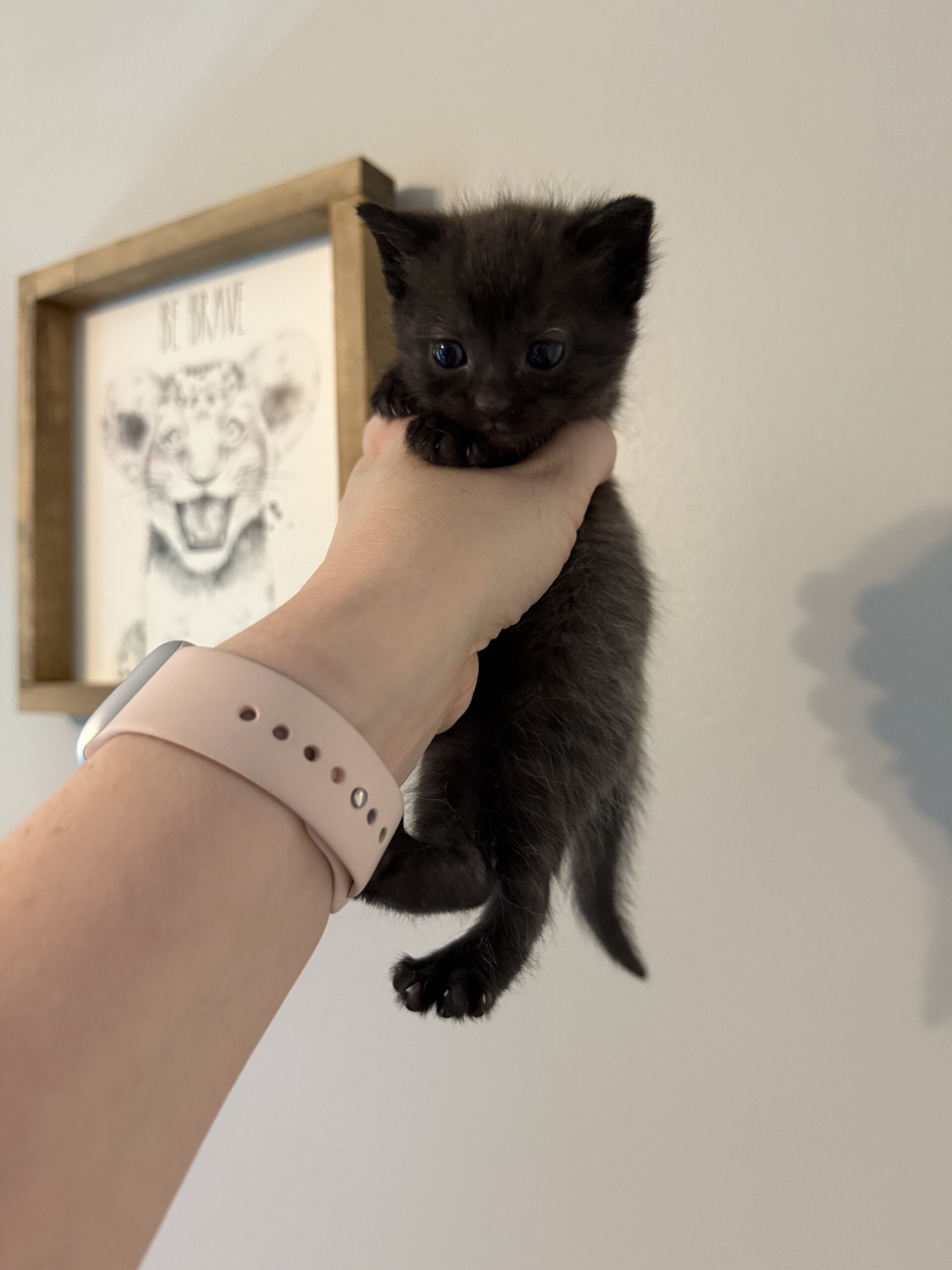Flicker is a total mama’s girl with a soft spot for face rubs and cozy snuggles. She’s gentle and affectionate, the kind of kitten who melts into your hand when you pet her. When she’s not seeking out love, she’s chasing her favorite toys or cuddling up with her siblings. Flicker would thrive in a home with another cat companion to keep her company. Her siblings Fitzgerald, Figaro, Flora, Finley and mama Freya are available for adoption as well!