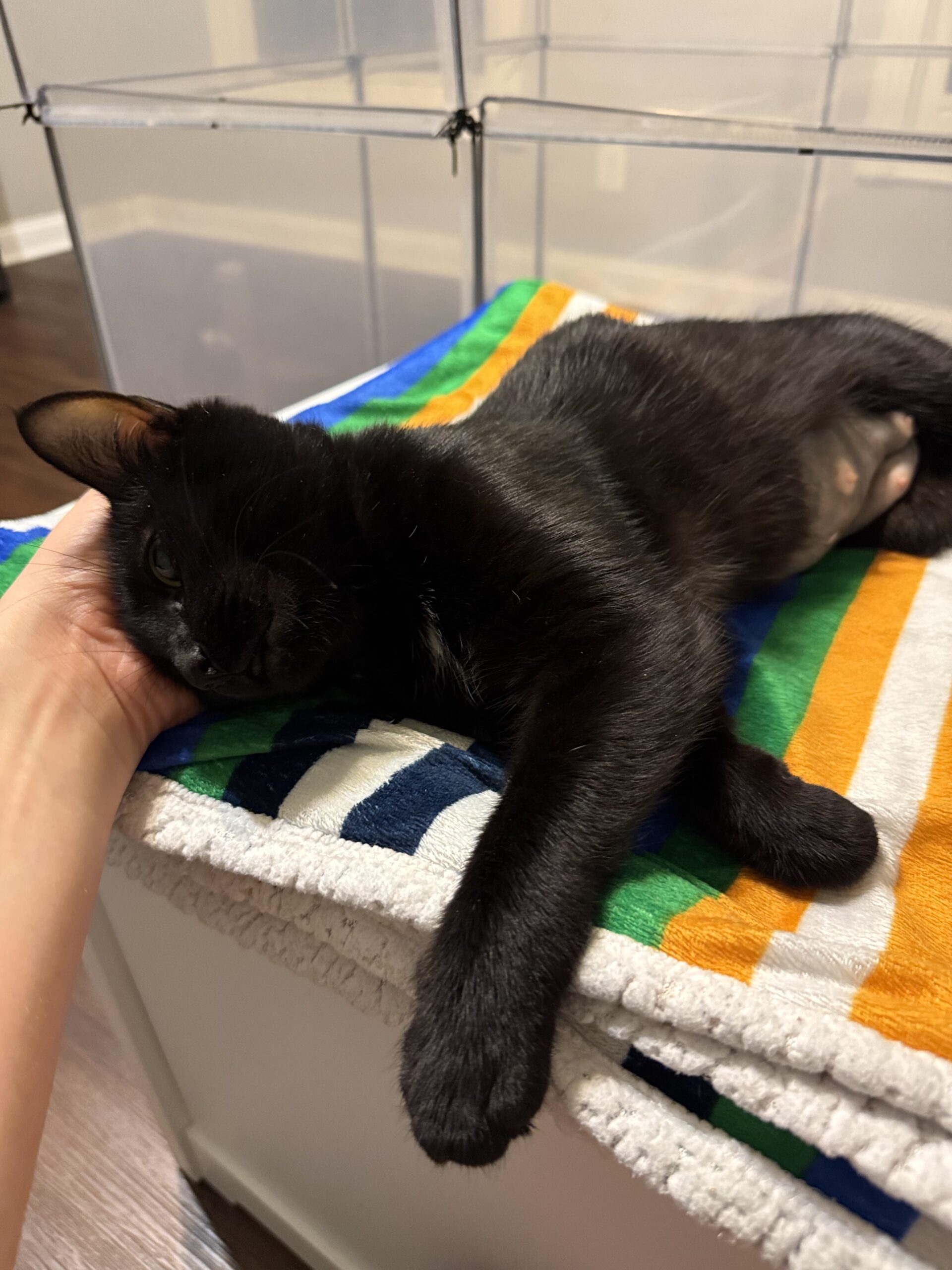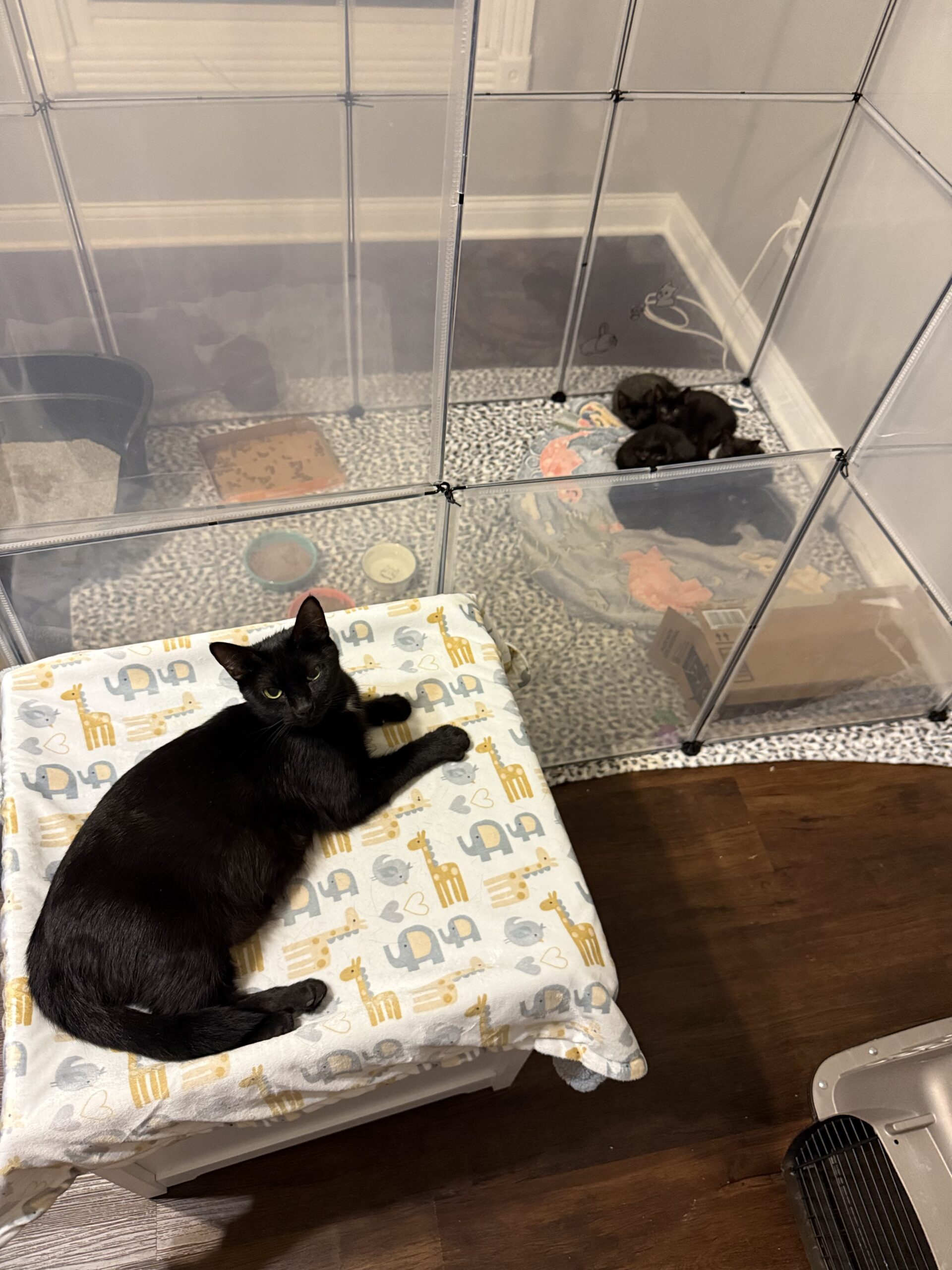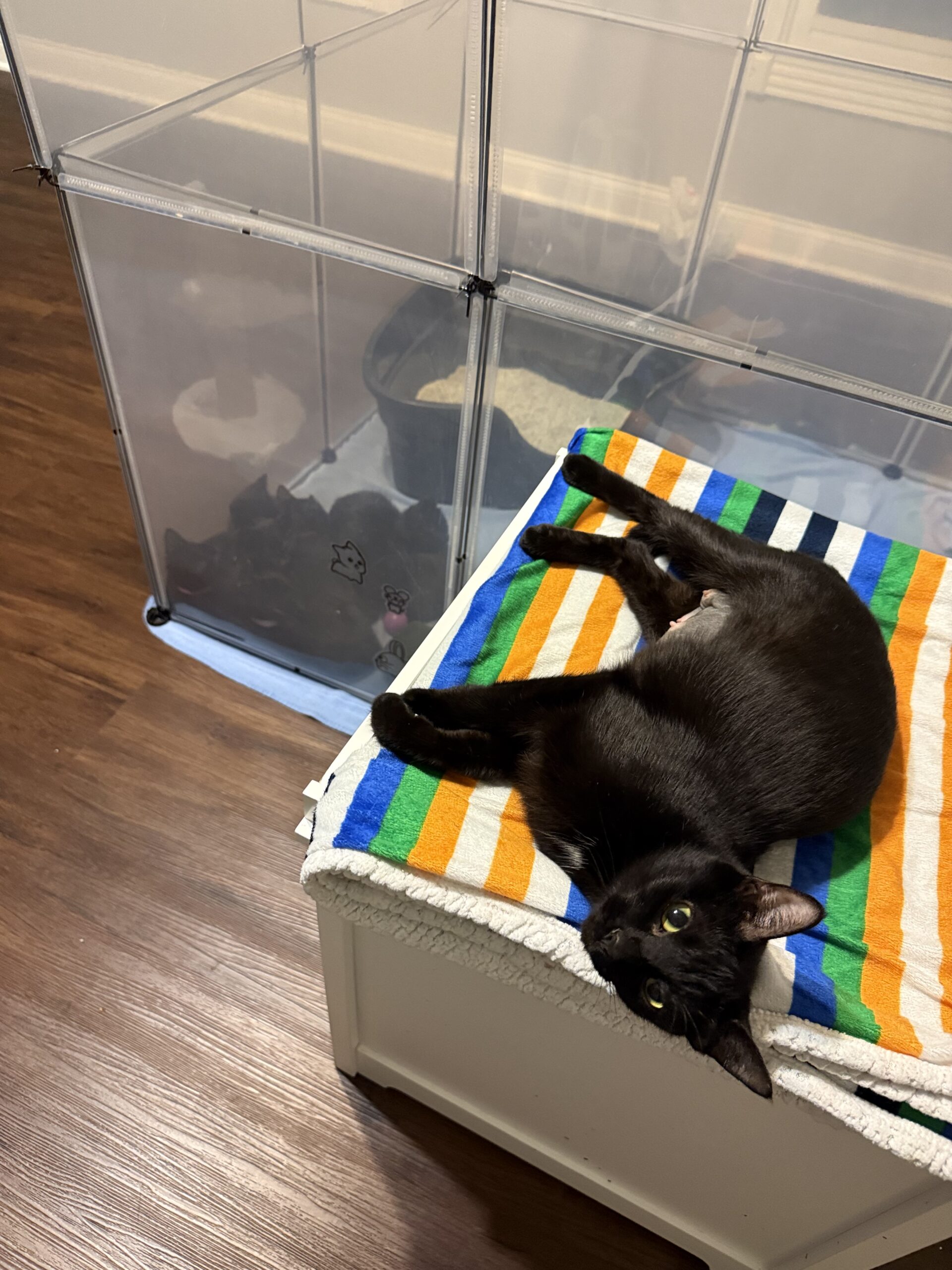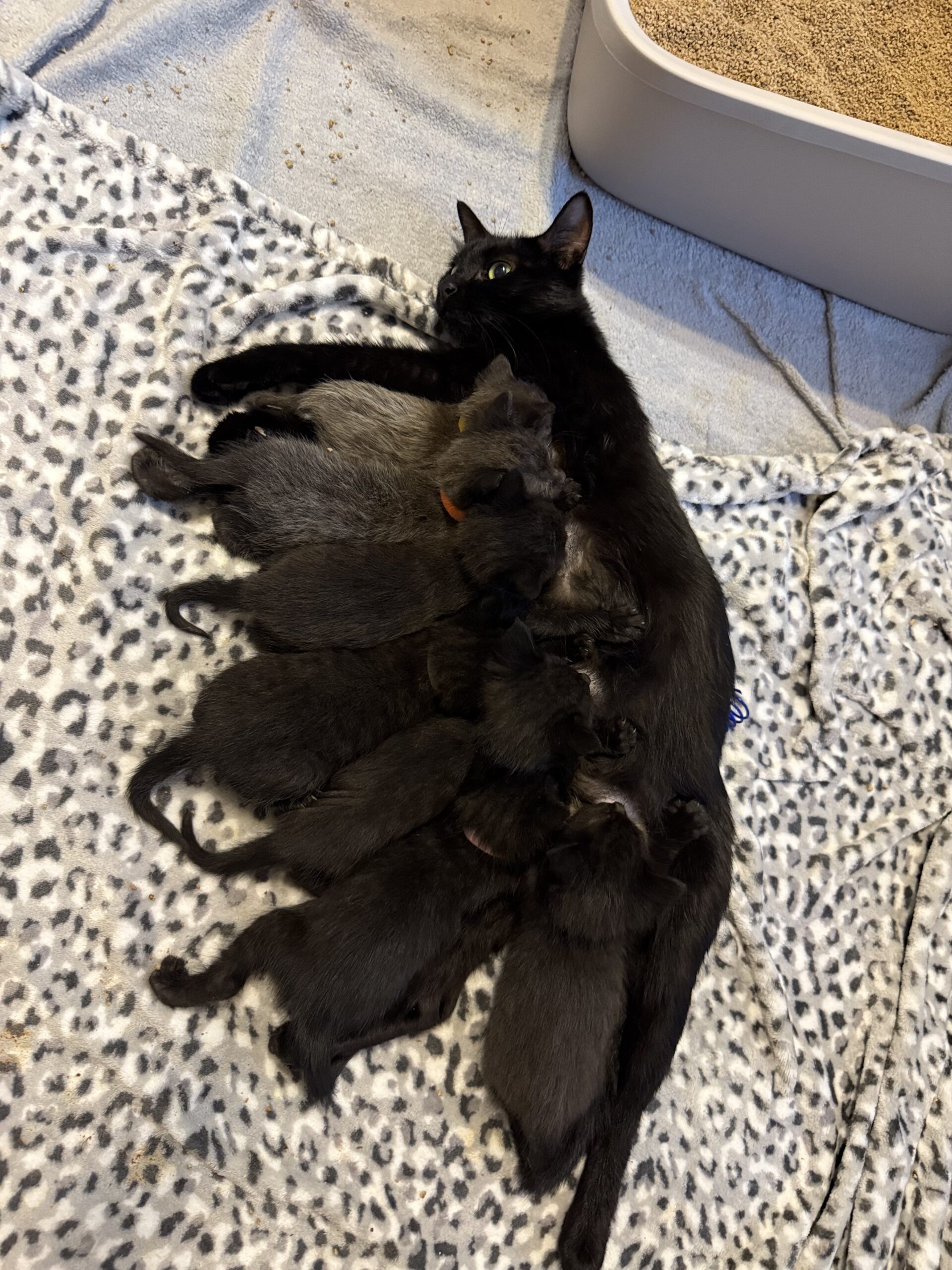 Freya is a young, retired mama kitty who’s ready to start her next chapter, one where she gets to be the baby! After birthing seven kittens (yes, seven!), she was more than happy to hand over “mom duty” to her foster mom and settle into the good life indoors.