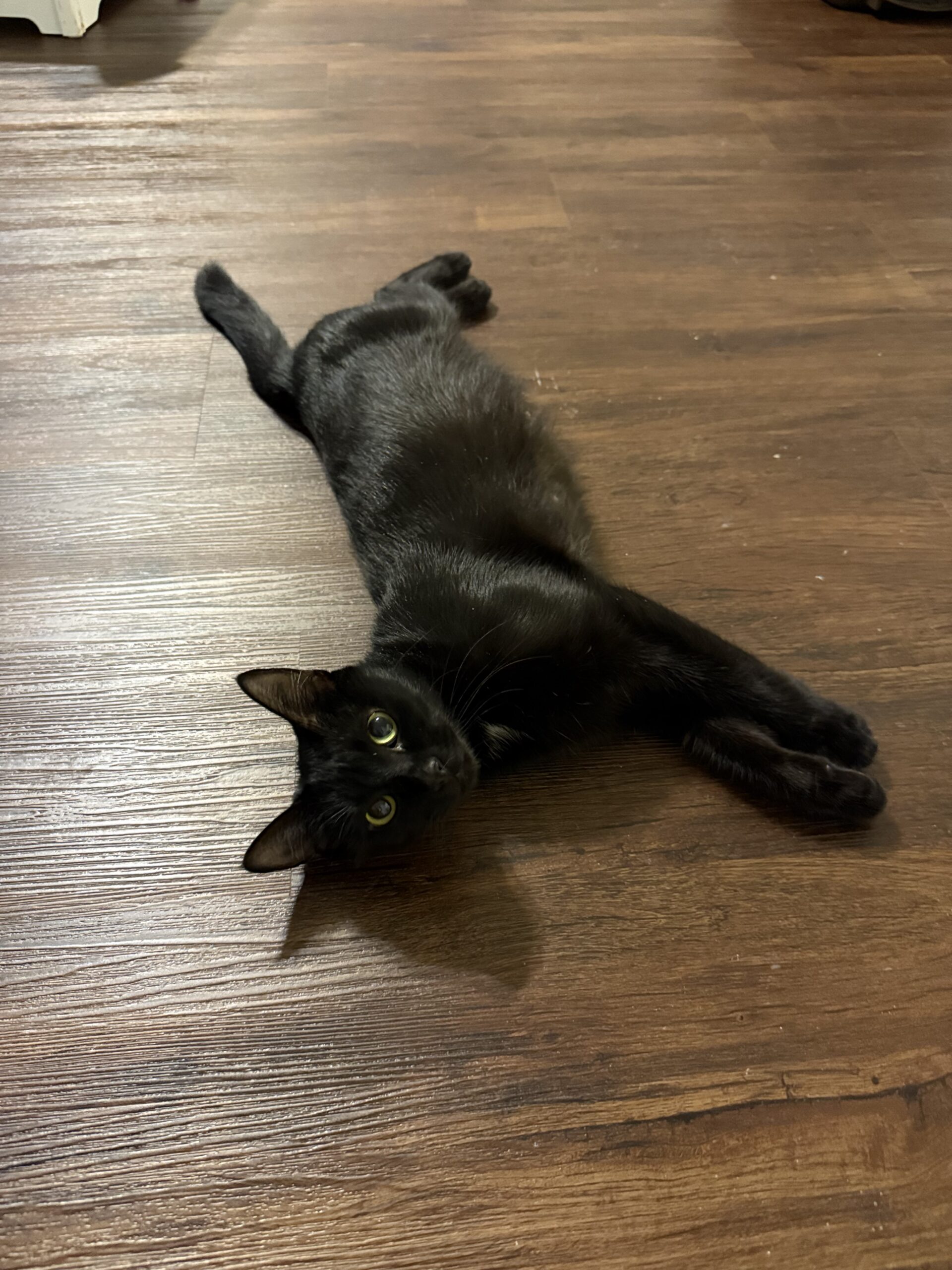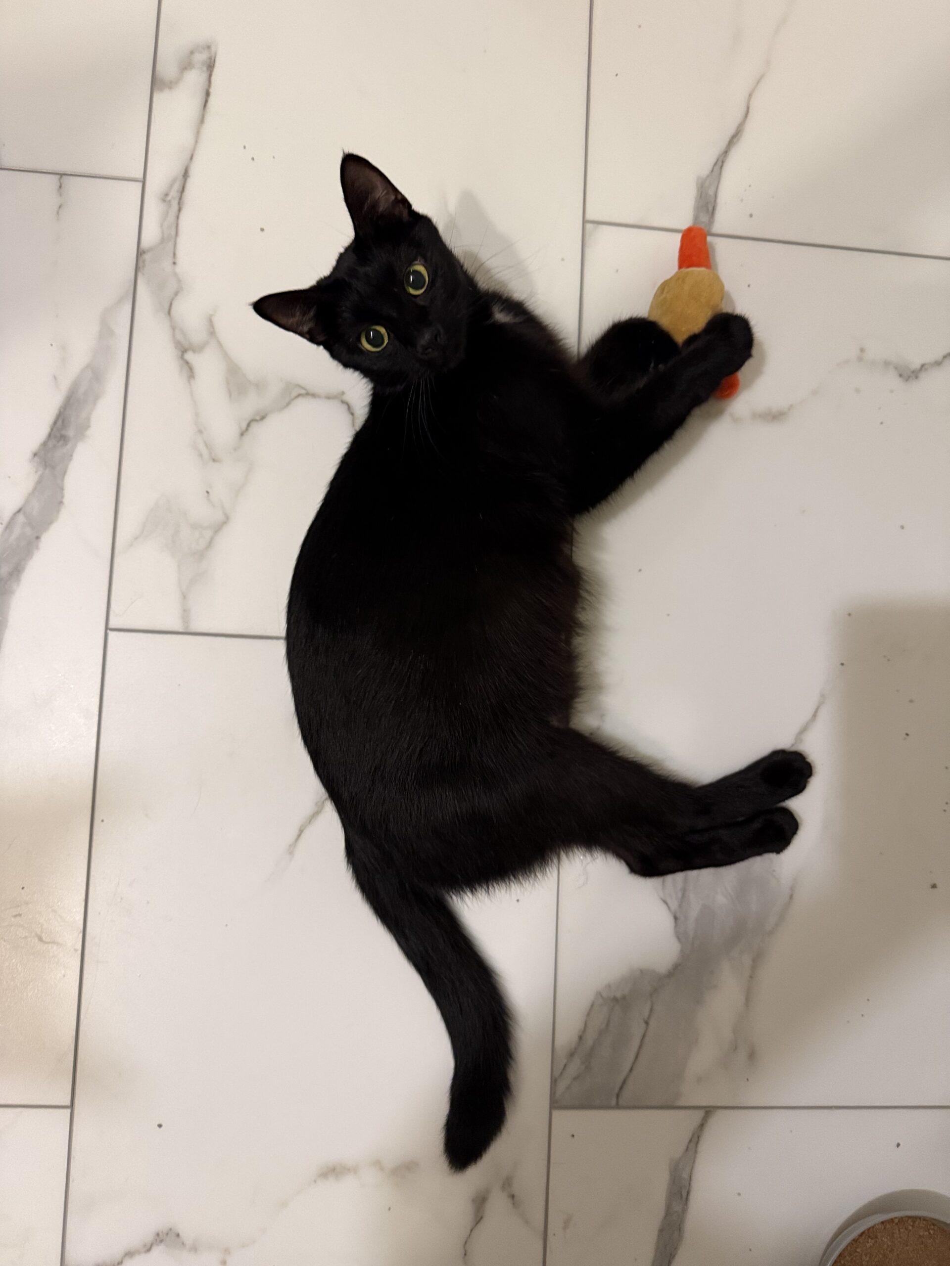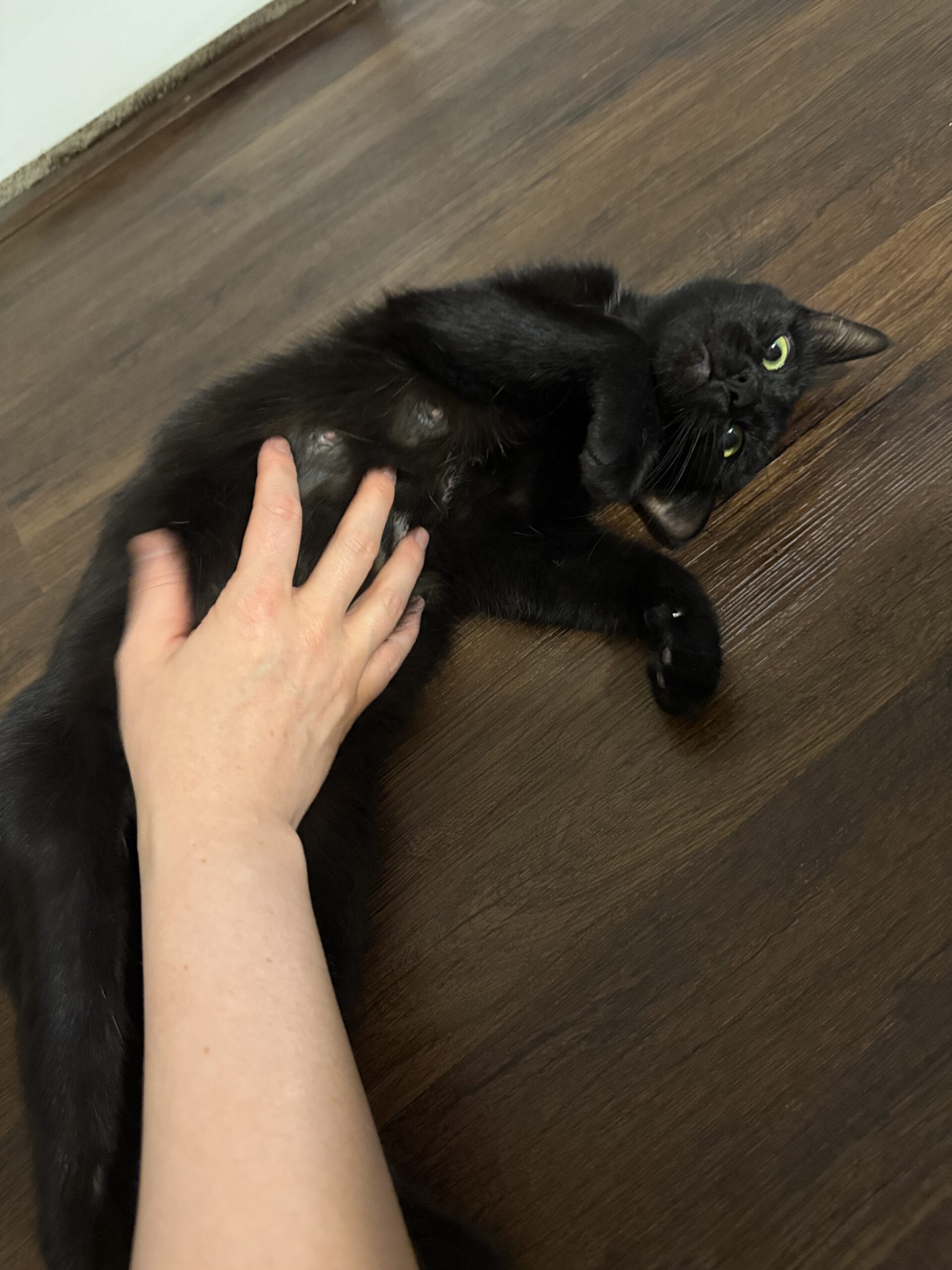 Now that her days of outdoor survival and motherhood are behind her, Freya spends her time soaking up sunshine, playing with catnip toys, following her foster mom from room to room, and begging for pets. She loves being close to her humans, basking in affection, and will happily roll over for belly rubs and attention.