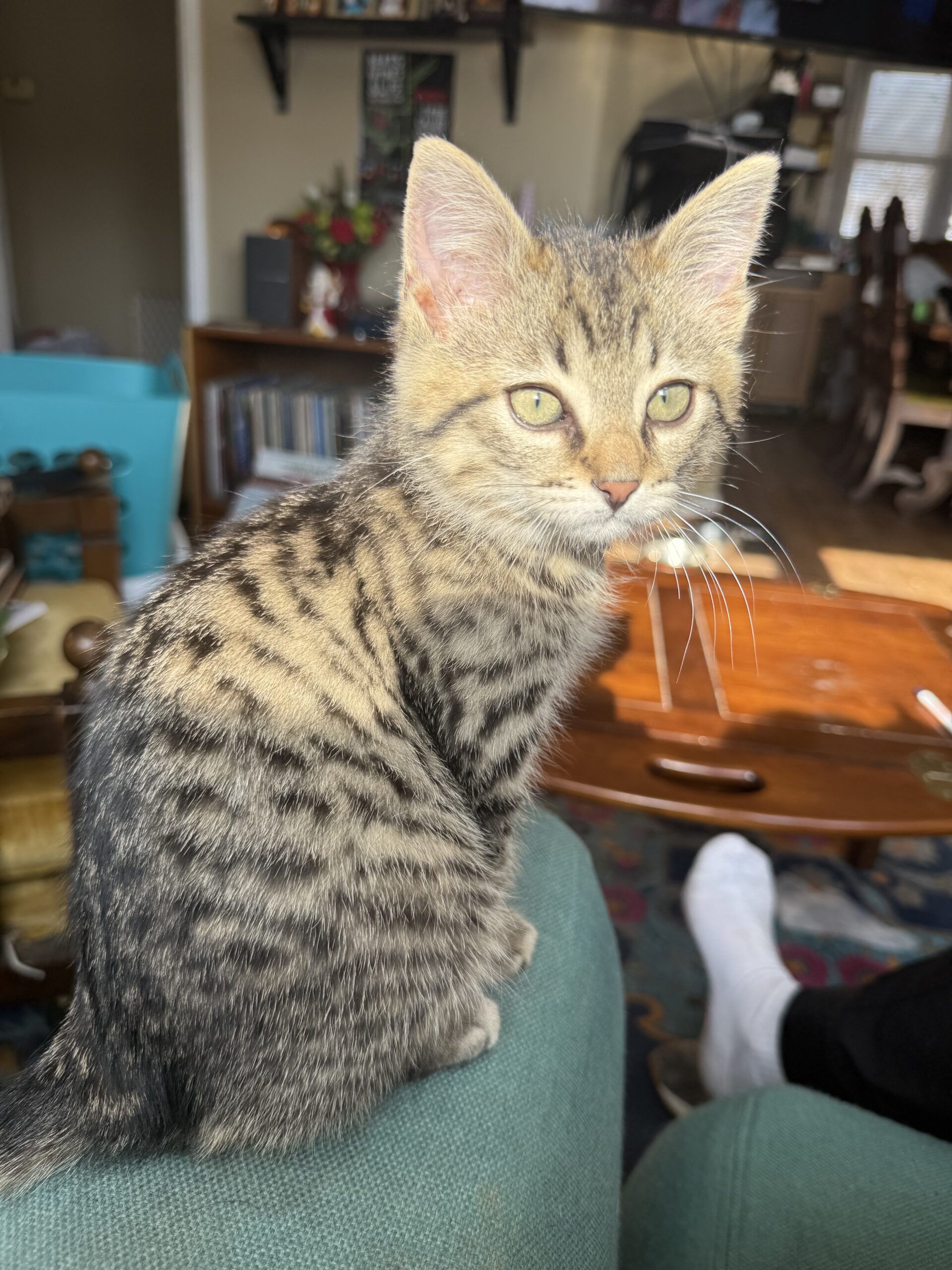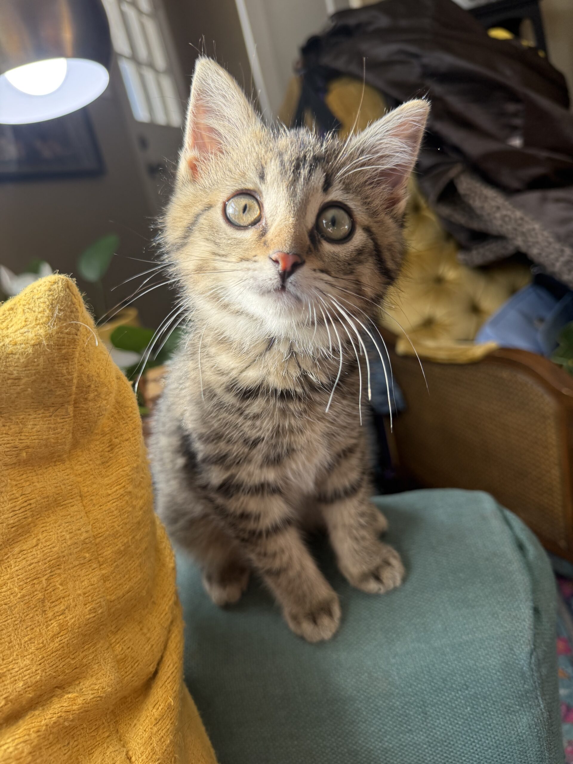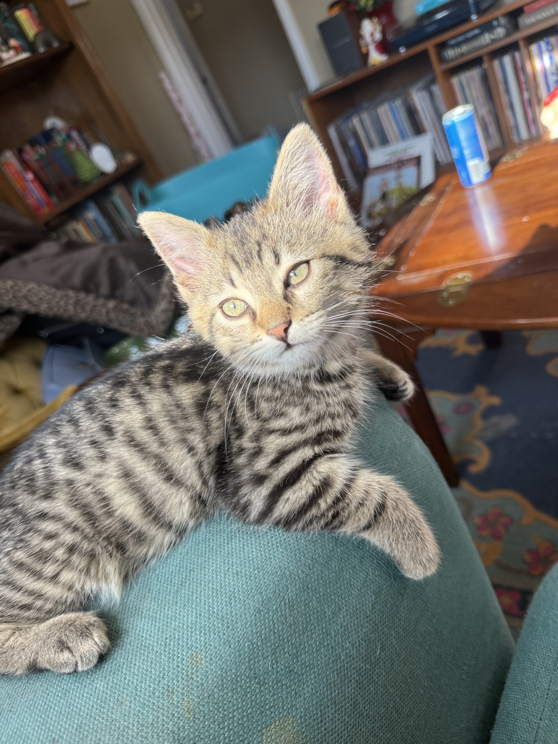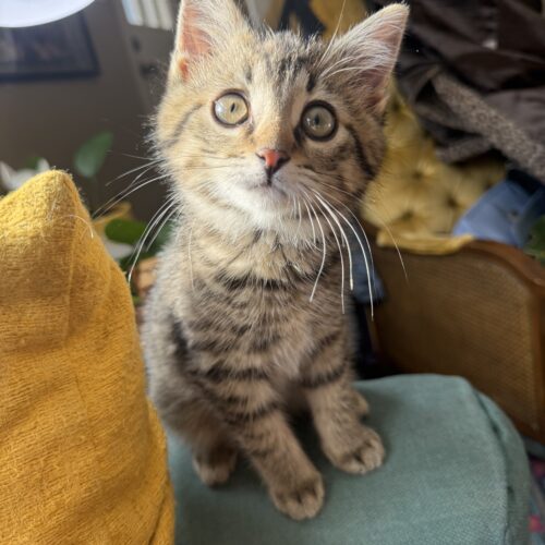 Gadget is a goofy lil man who is all play! He is a very confident guy who can turn anything into a fun time. No need to spend your money on fancy cat toys, a paper ball, hair clip, or old dog toy will do! Once he’s played to his hearts content, he enjoys curling up with his foster and purring himself to sleep. Gadget would love another cat or small dog to have as a companion.  He's best buds with his foster mom's dog. He's neutered, microchipped, and utd on vaccines .