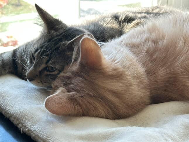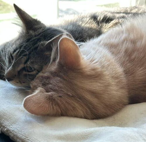 They’re curious, affectionate, and get along wonderfully with other cats. Whether they’re exploring every nook of the room or lounging in a sunbeam, Gilly and Kermit are happiest side by side.