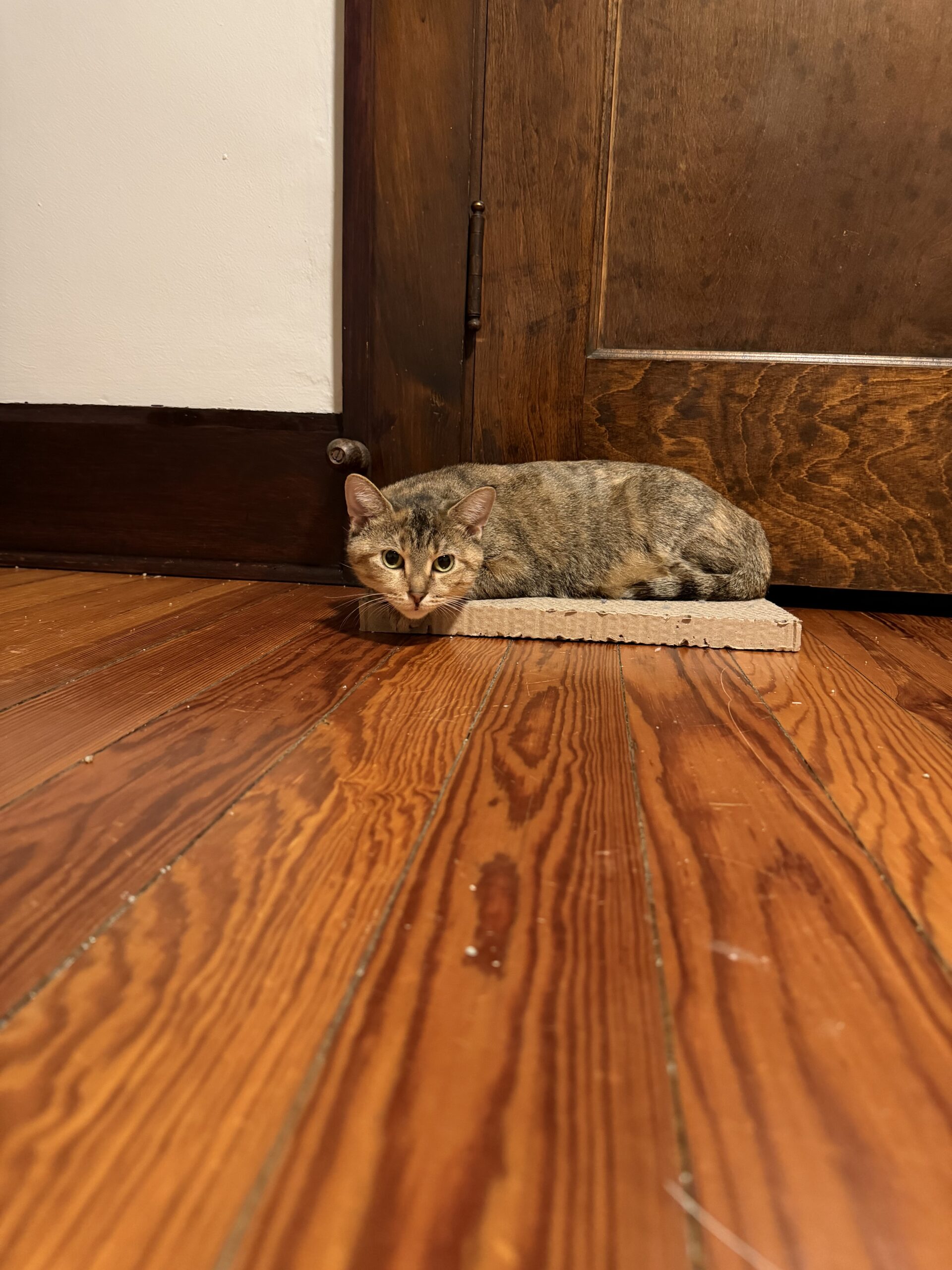 INDOT is named after the Indiana Department of Transportation, but her true calling has been repairing hearts. Just a baby herself, she raised her own litter of kittens and then immediately stepped in to mother three more who arrived at the shelter freezing and in need of a new mama. INDOT can be a little shy at first, but the tiniest crack of a wet food can turns her into a playful, zoomy girl who keeps up with kittens half her size. Now officially retired from motherhood, this snowstorm-tested sweetheart is ready for a forever home where she can finally be the one doted on.