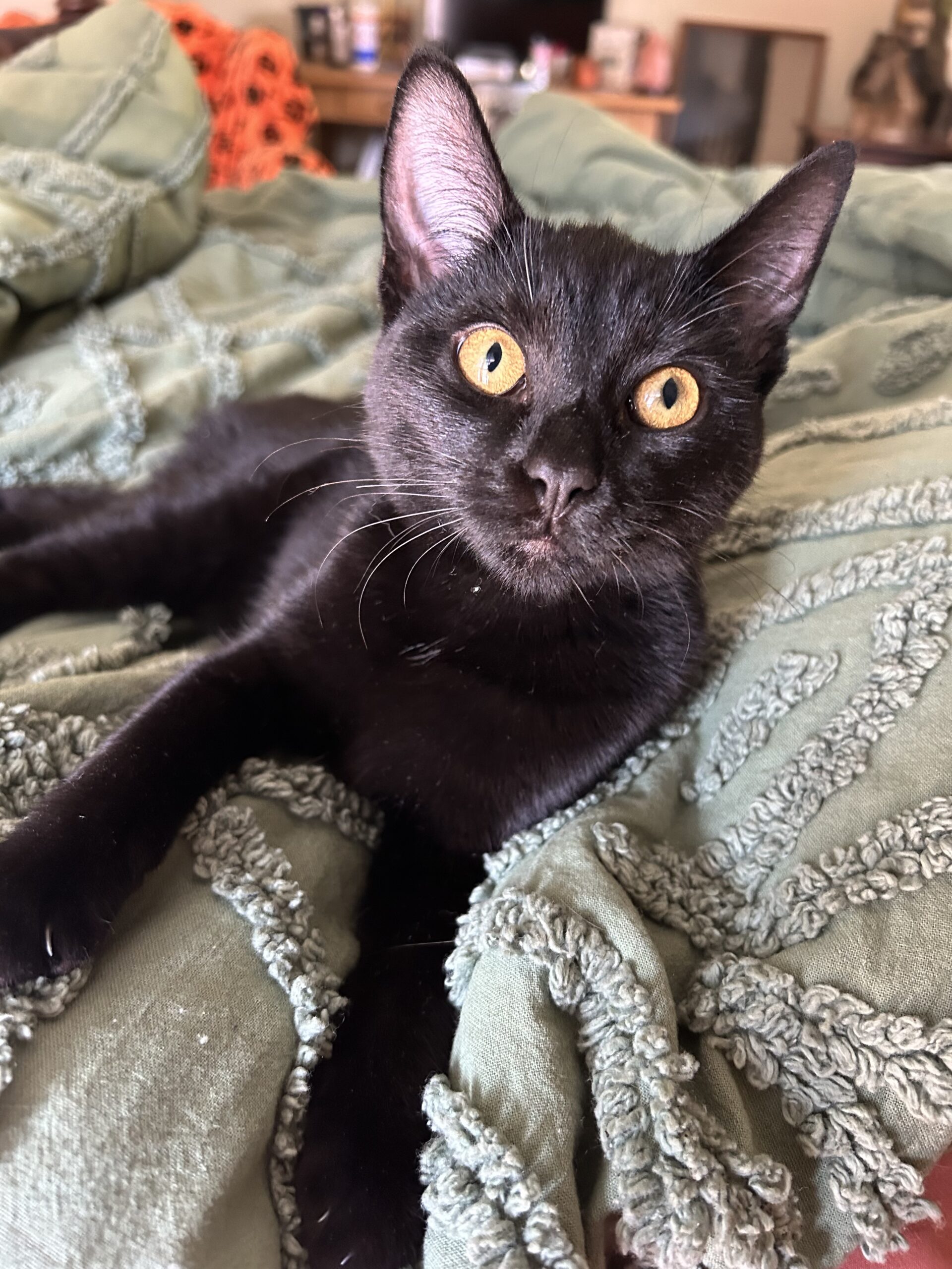 Iris' estimated date of birth is 3/25/25. Iris is spayed, microchipped, up-to-date on rabies and FVRCP vaccines, negative for FIV/FeLV, and has a negative fecal. Her ideal adopter is willing to feed her a moisture-rich species-appropriate diet (wet food). She is being fostered in central Indianapolis. Apply to adopt Iris today at https://arporescue.org/cat-adoption/