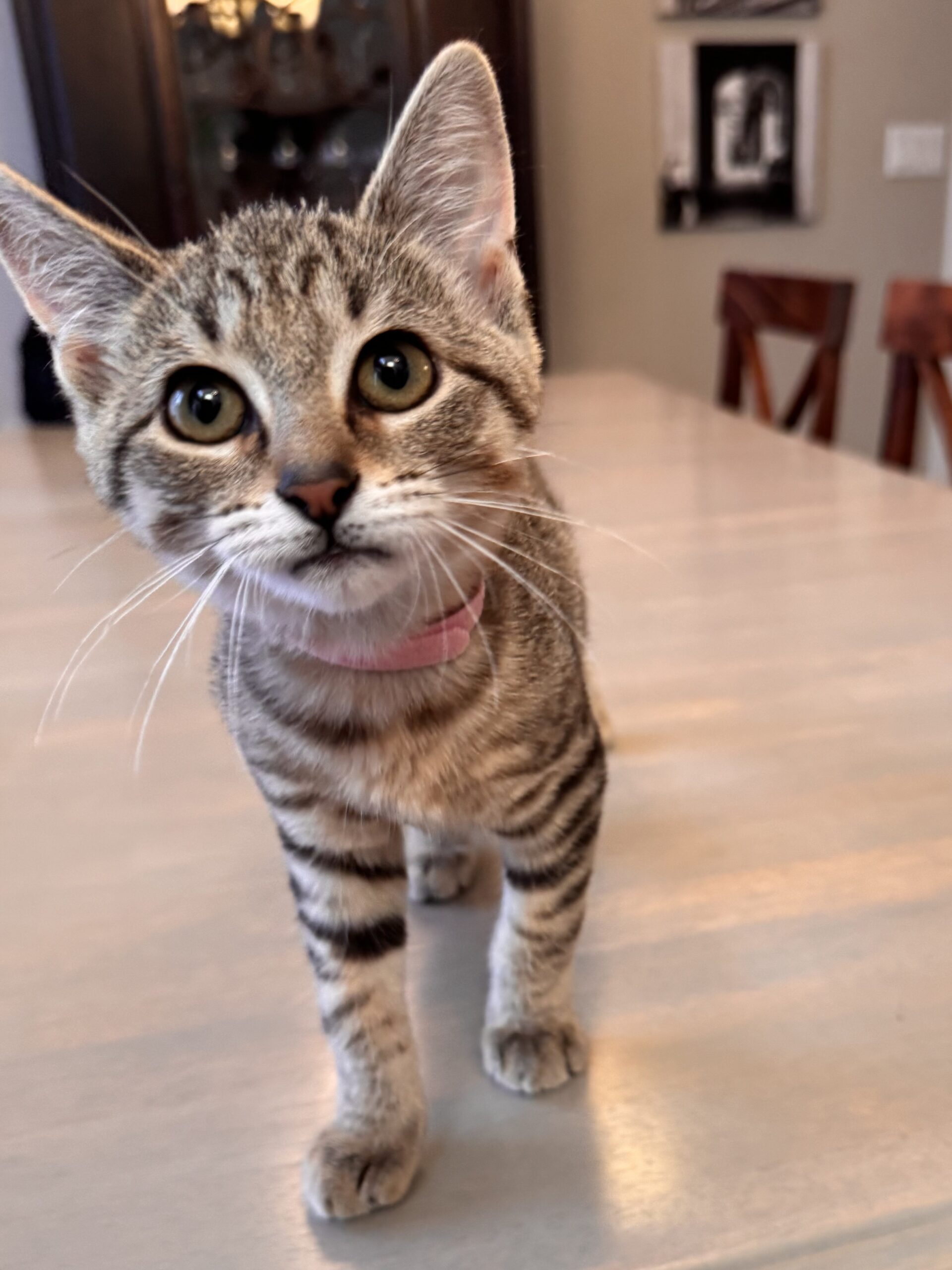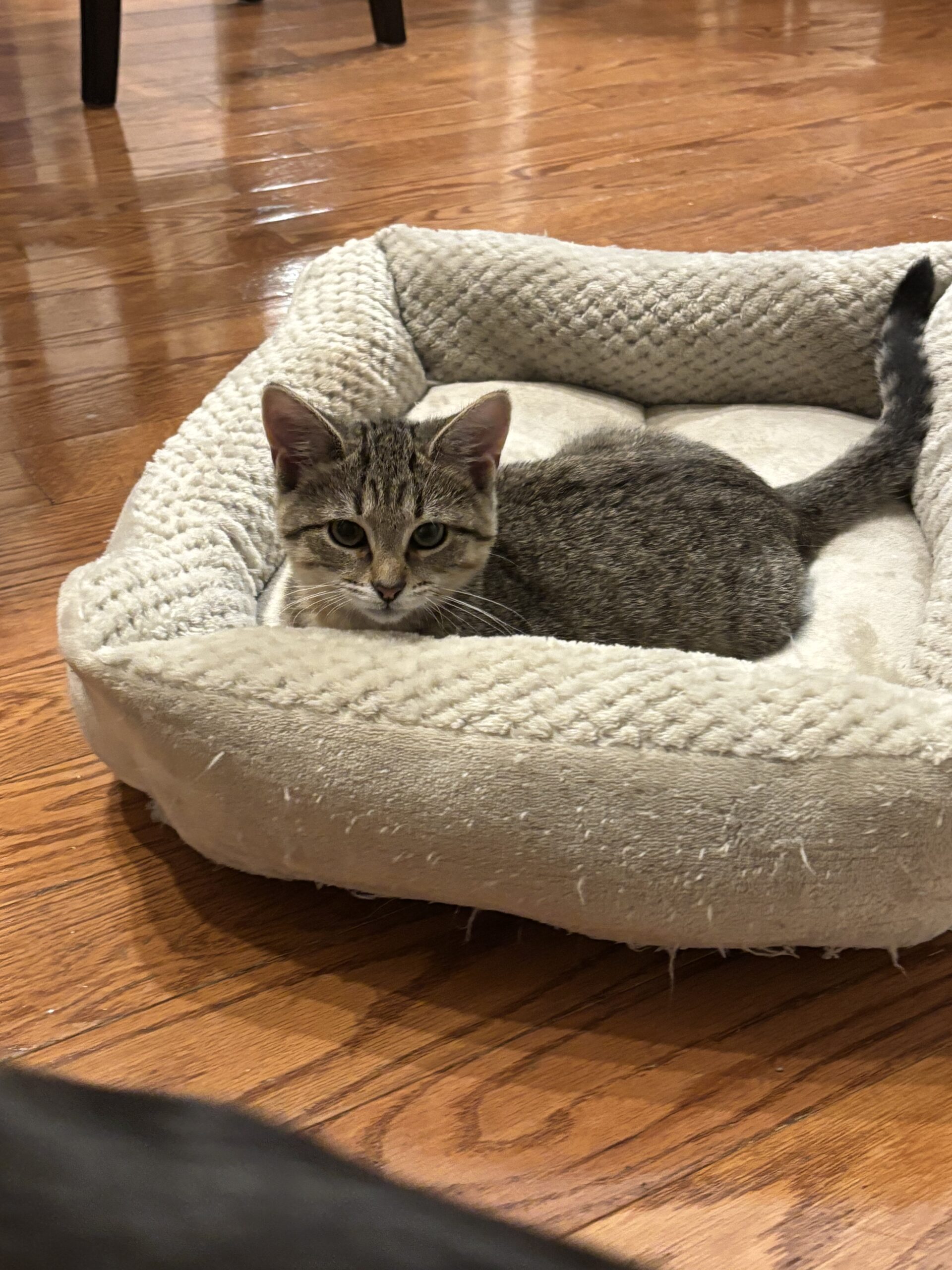 Julia adores batting puff balls, chasing furry catnip mice, and finding the softest spots for her beauty naps. Though she’s all grace and charm, she can hold her own in a good wrestling match with her brothers.