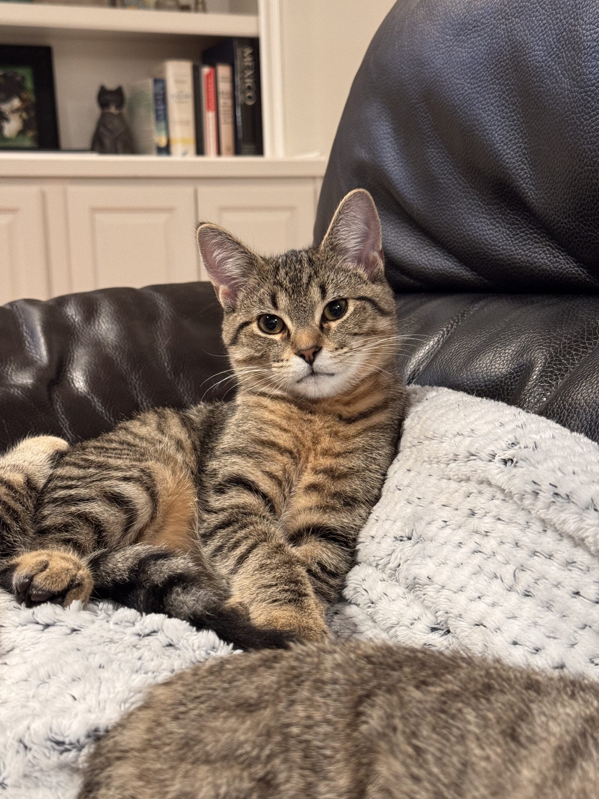 After a round of solid kitten games, Justin is all about lap time and snuggles. He’s affectionate, loyal, and even moonlights as a hairstylist—occasionally helping his little brother Joey with “grooming appointments.”