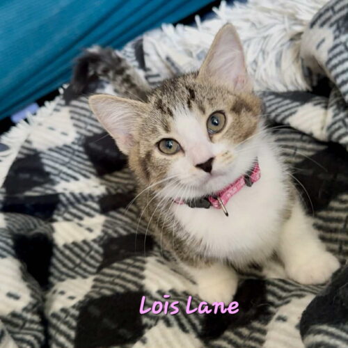 Lois has been spayed, microchipped, is up to date on her kitten vaccines, and is litter box trained. Her mother tested negative for FIV/FeLV.