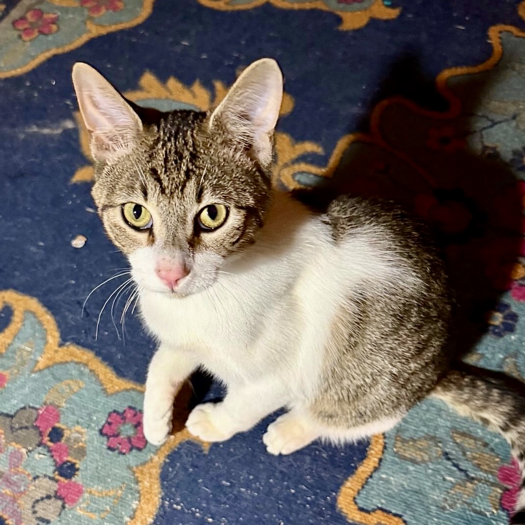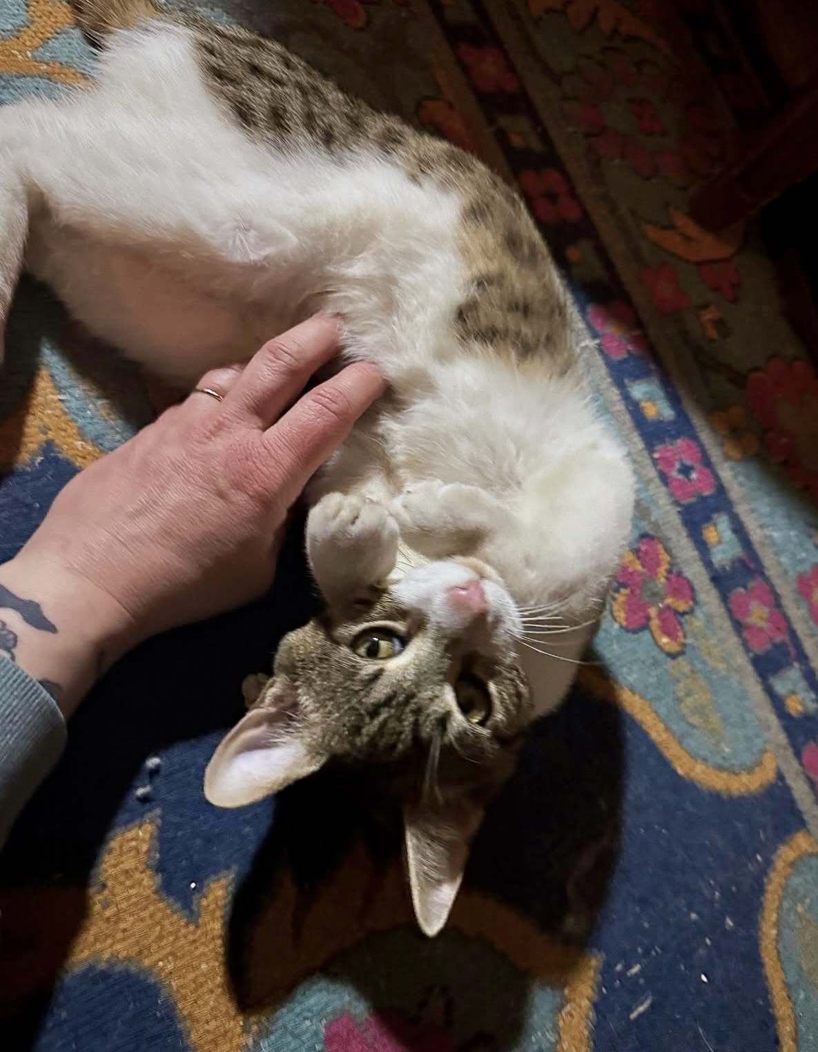 Merle is a teenage kitten with a heart as big as his purrs. This sweet, curious guy is blossoming more every day as he learns to come out of his shell—and it’s a joy to watch! Once Merle feels comfortable, his affectionate nature truly shines. He’s a champion purrer, especially when belly rubs are involved (yes, he loves them!).