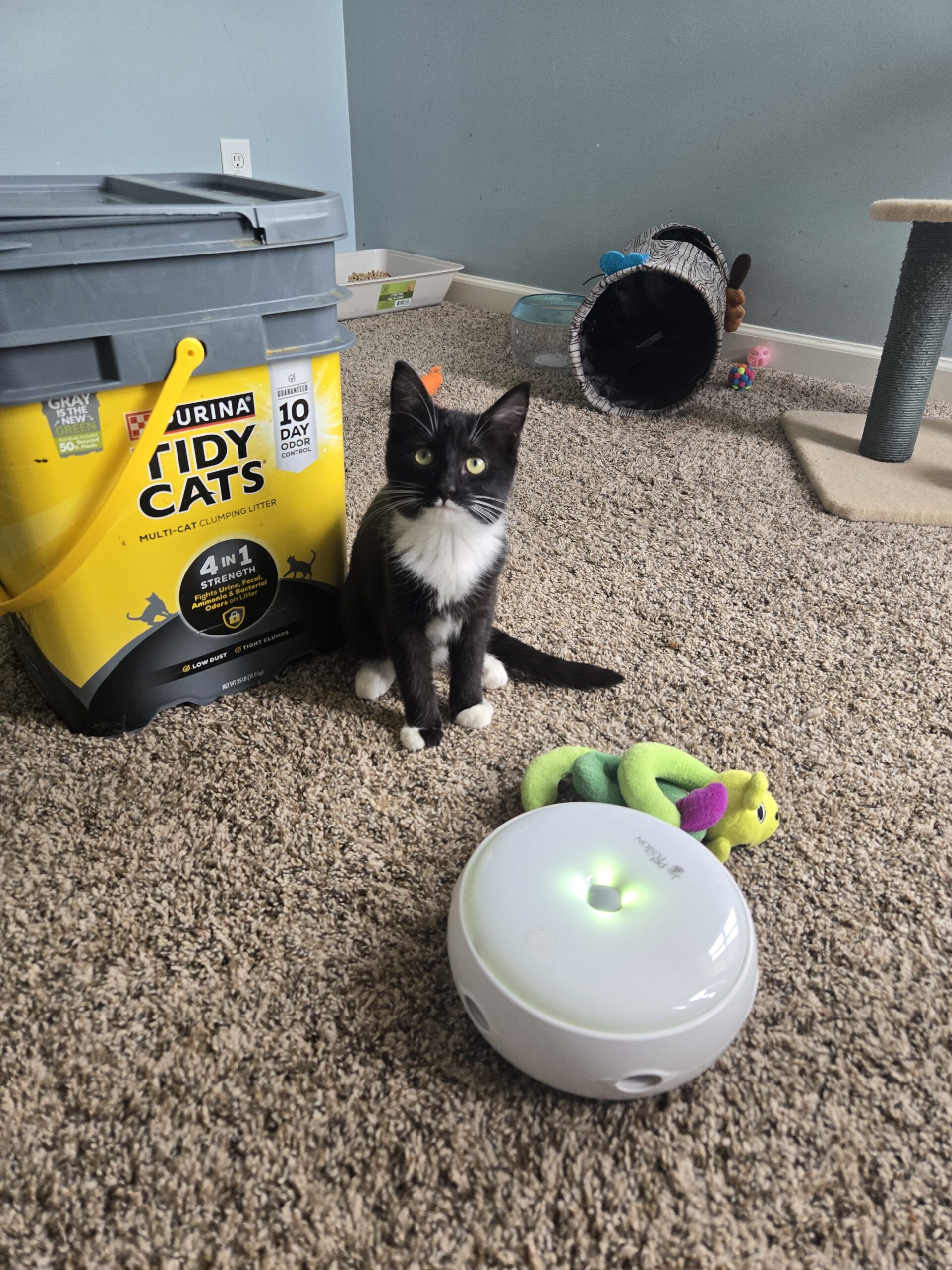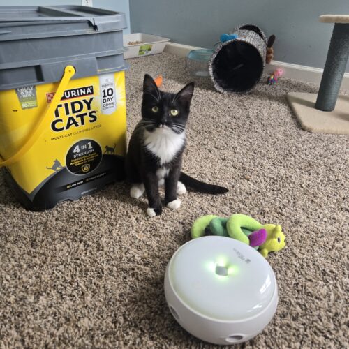 Hello my name is Miss Bunny. I am a beautiful, gorgeous perfect lady cat. I came with my two brothers Eggbert and Peep. We are all very social and friendly. I am the most reserved, which isnt saying much because i warm up pretty quick. I enjoy snuggles, playing with all of the toys and bell rubs. I am a purrrrfect lady.