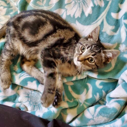 Mungojerrie may be full of spunk, but he’s also a total sweetheart who enjoys winding down with snuggles once playtime is over. He and Rumpleteazer are deeply bonded—they play together, cuddle together, and can’t imagine life apart—so they’re looking for a forever home as a pair.