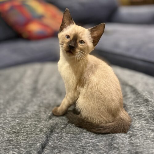 Pretzel is a darling seal point mix with the sweetest personality you could ever hope for. This charming boy is gentle and affectionate. With his soft fur, soulful eyes, and loving heart, Pretzel is a perfect mix of playful kitten and loyal companion.