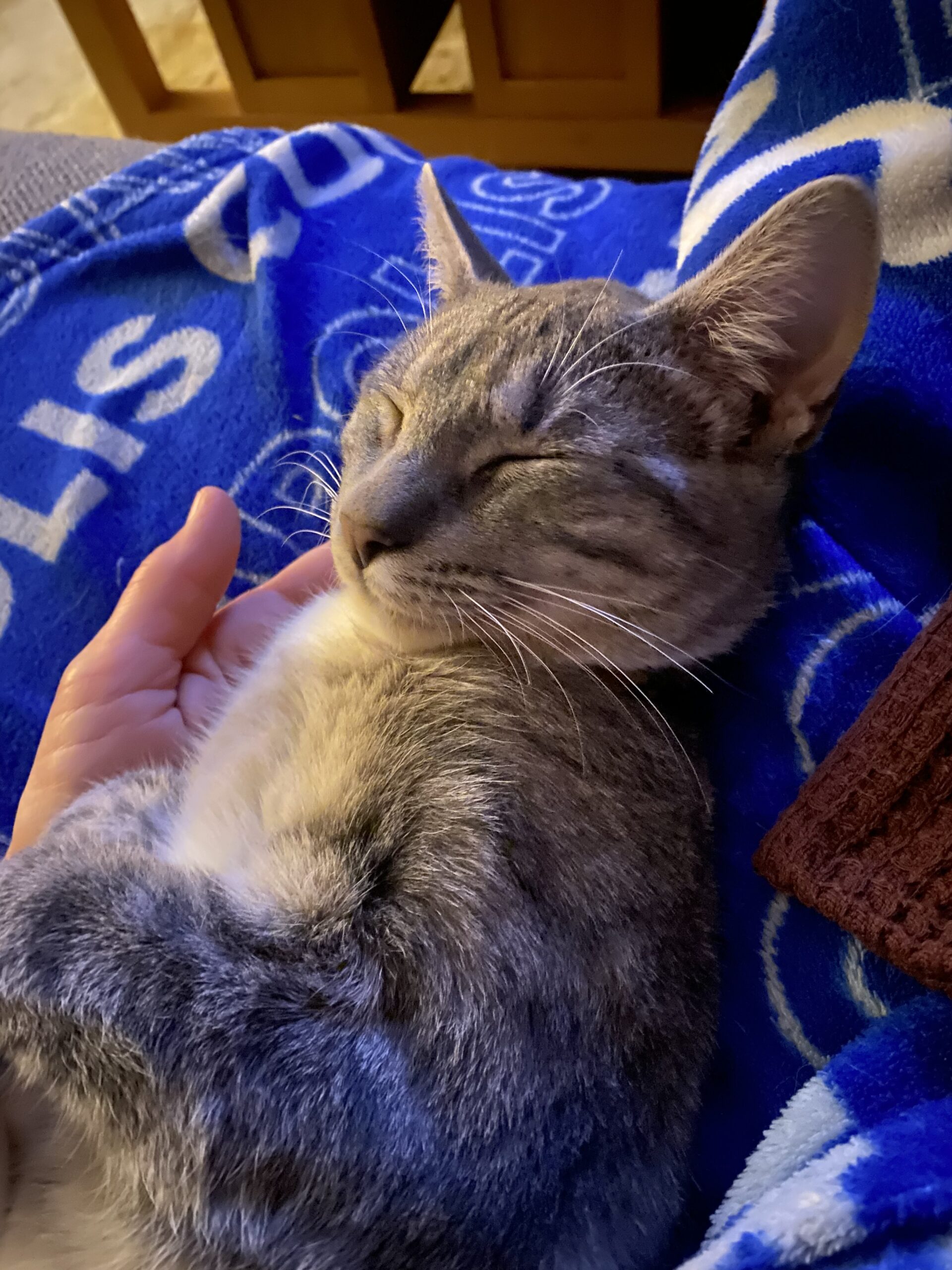 Roger was rescued on a Sunday morning in mid-September and unceremoniously thrust into the arms of his now foster mom’s daughter. Now he is living his best life with his kitten brother Craig, two adult resident kitties and an adult resident pup. Of the two kittens, Roger is the more outgoing and curious one. He follows his foster mom around and sits close when she works from home. He doesn’t resist being picked up or held. He’s a natural athlete and has been spotted carrying his jingle bell ball in his mouth up and down the stairs.