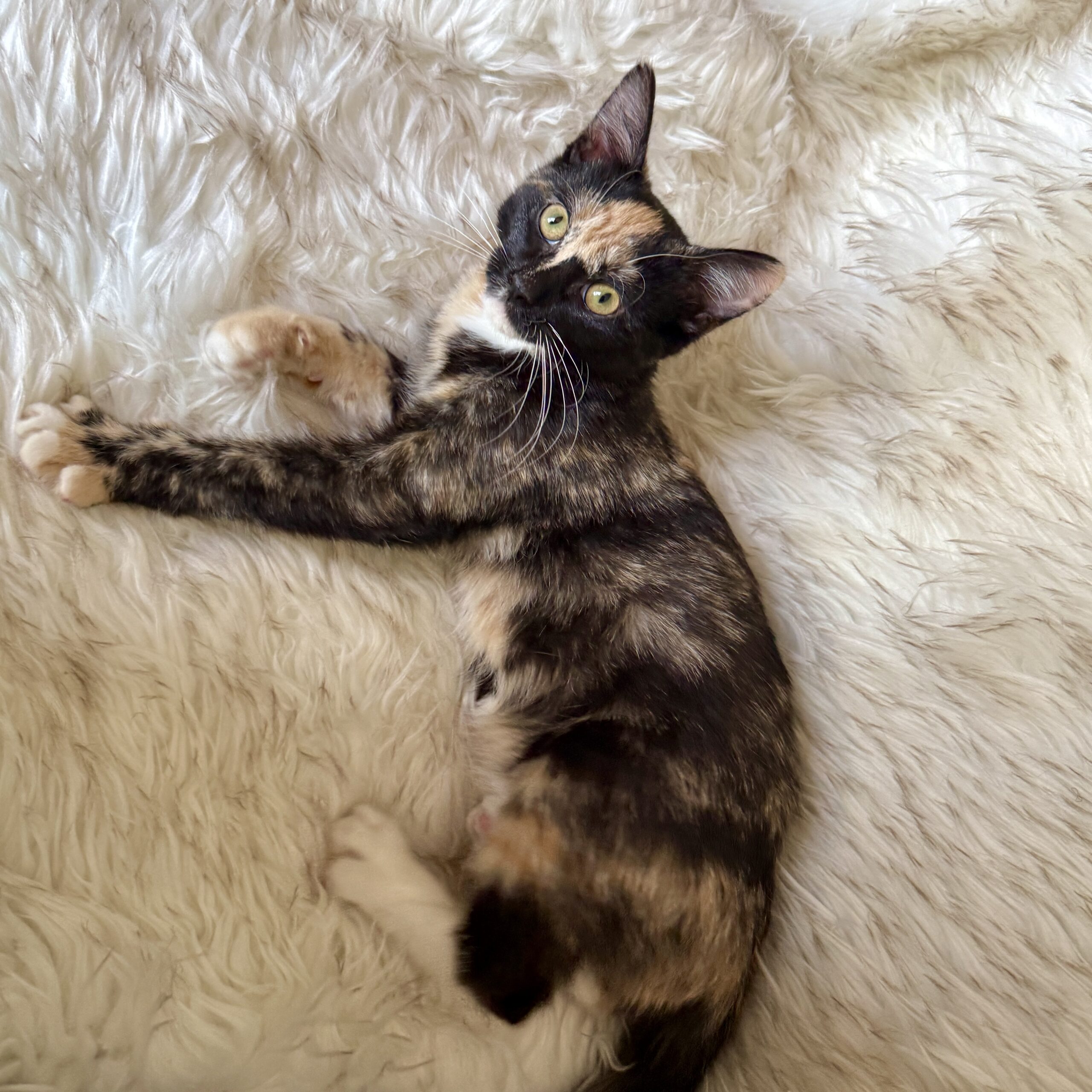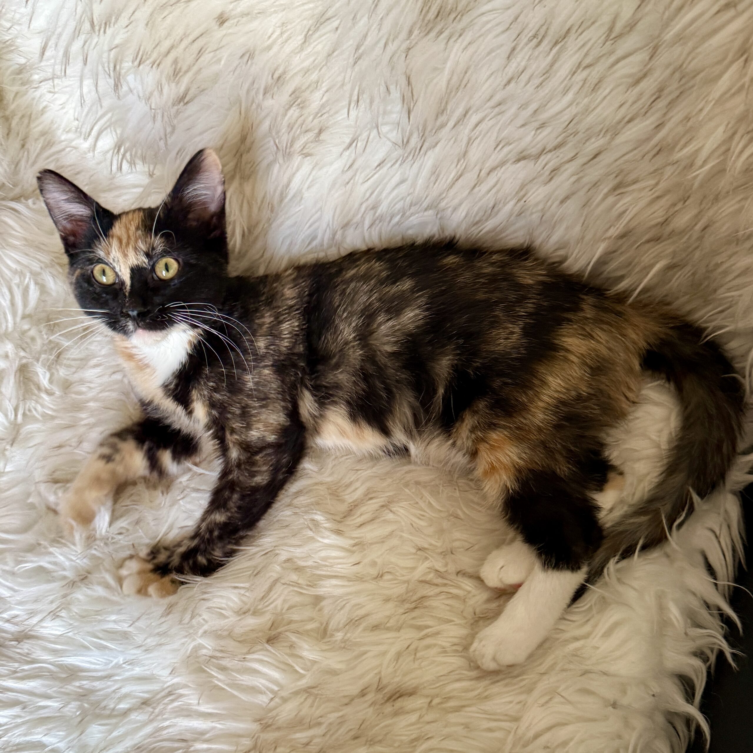 Rumi is a calico kitten named after the fierce K-pop demon hunters, but don’t let that fool you, she’s all sweetness. She’s very friendly and a lap kitten in training who loves attention and human companionship.