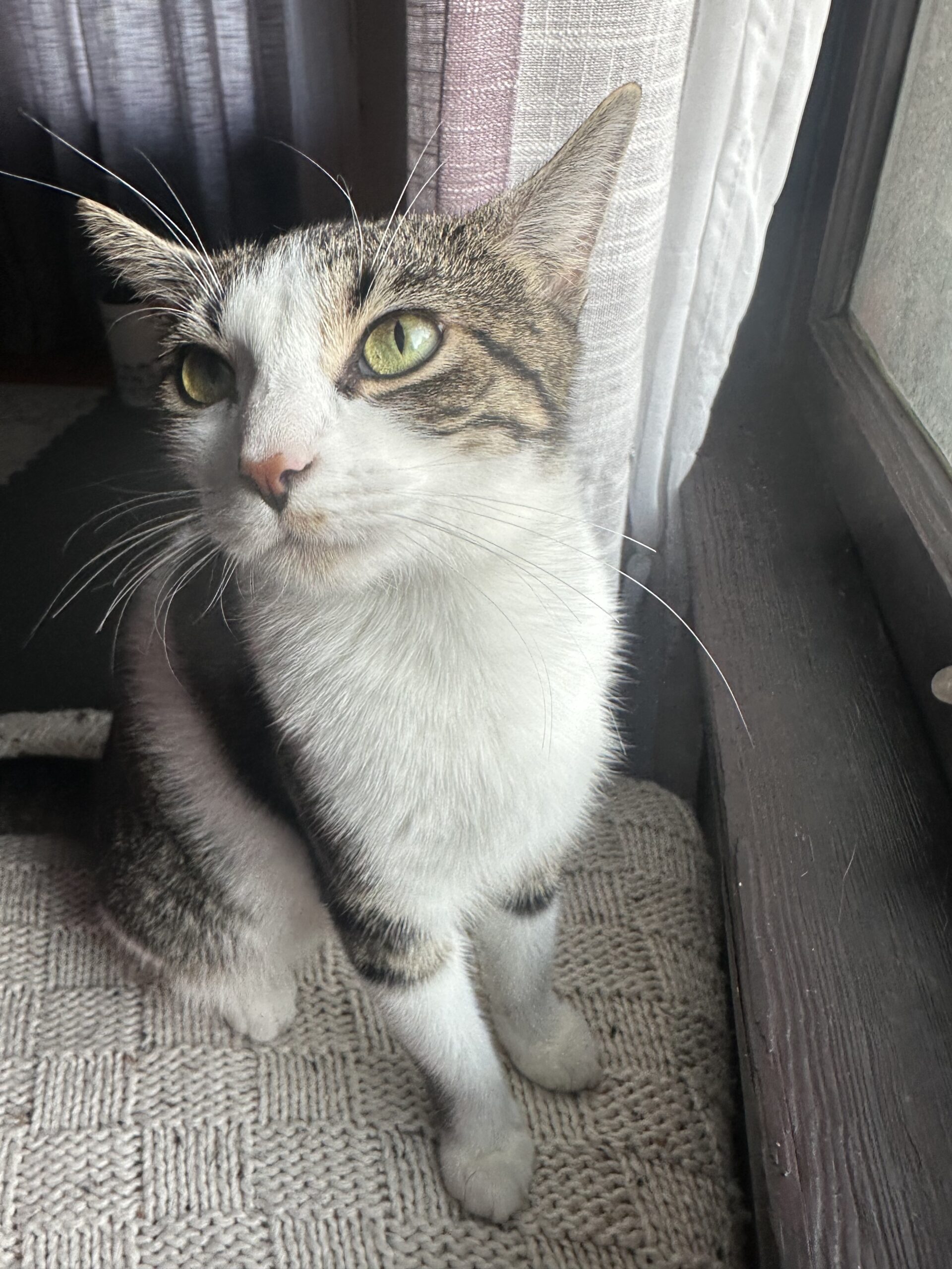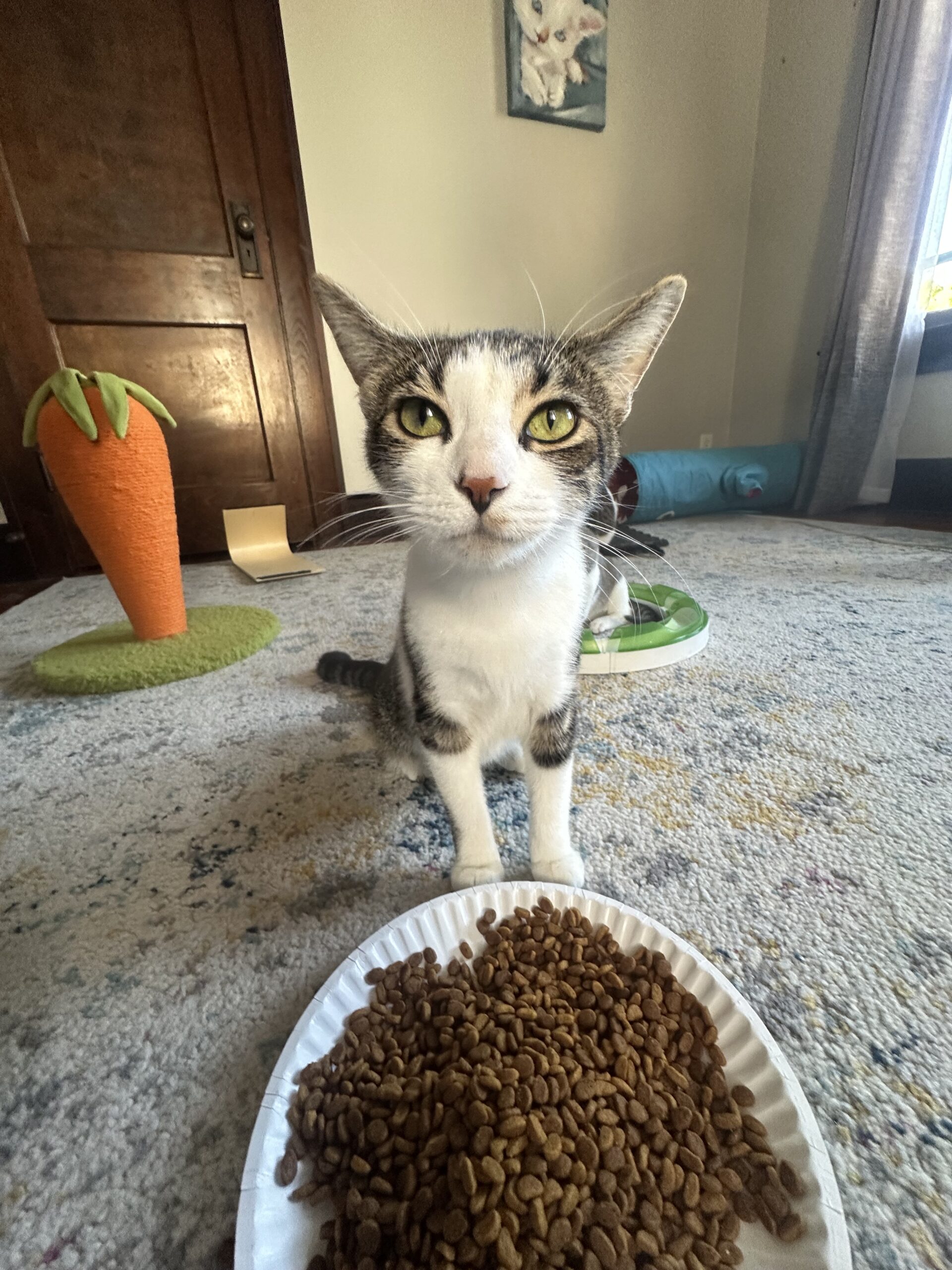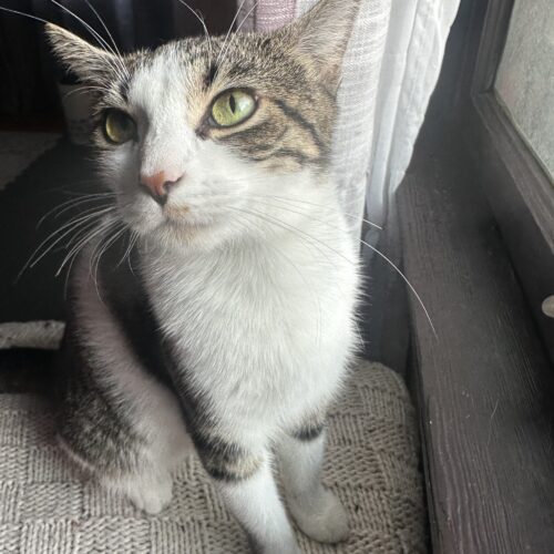 Showgirl became a mom while she was still practically a kitten herself, and now she’s ready to enjoy being carefree again. She’s playful, sweet, and full of personality, always ready for cuddles or a toy to chase. Showgirl’s charm is impossible to resist!