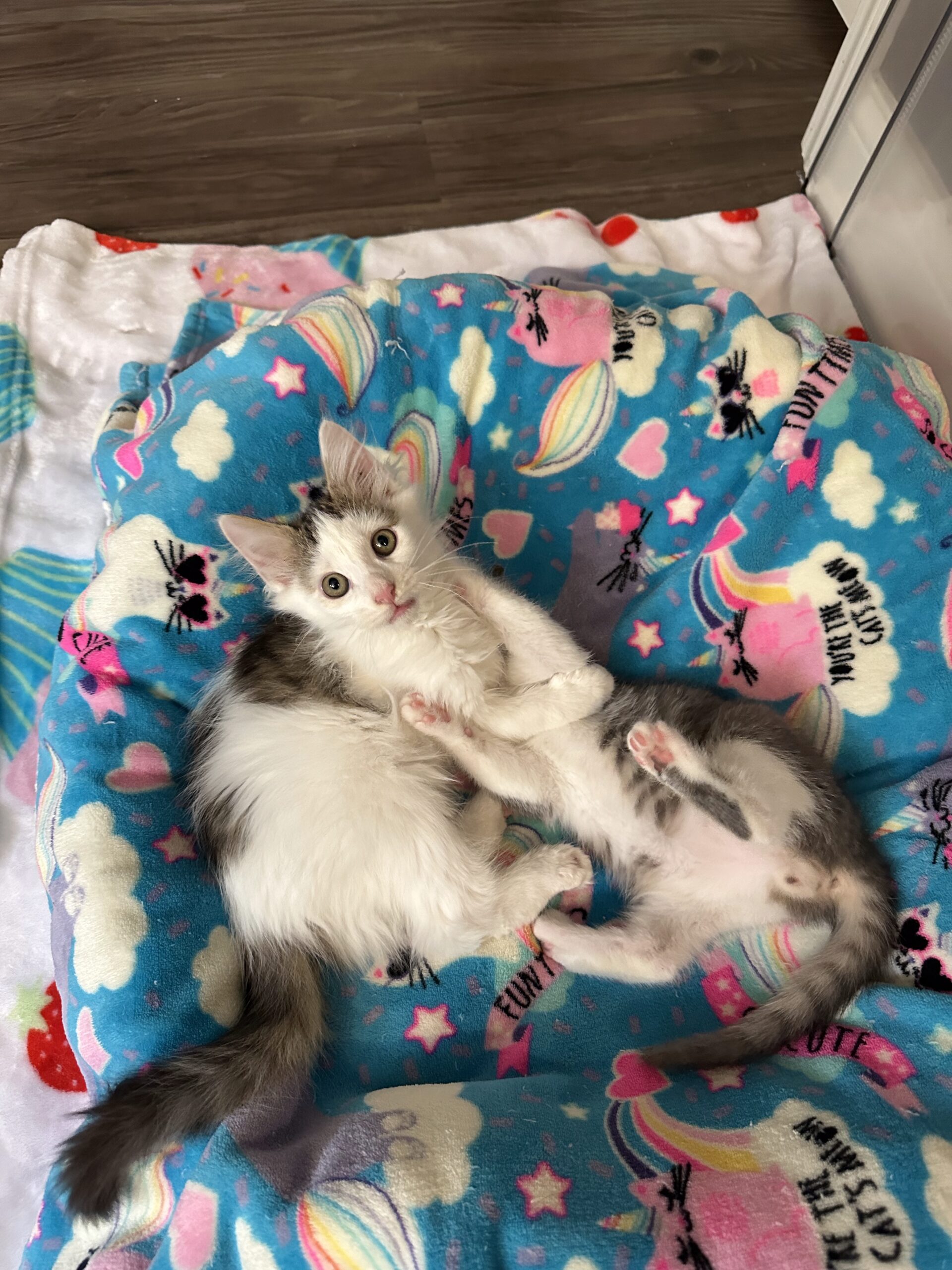 Meet Snickers, a joyful little fluffball with a heart as soft as his fur! This silly, sweet kitten came to ARPO as a single baby at the shelter, and once he was cleared to meet other kittens, he was paired with his new best buddy, Reeses. The two quickly became playmates, and Snickers learned just how fun life can be with a friend.