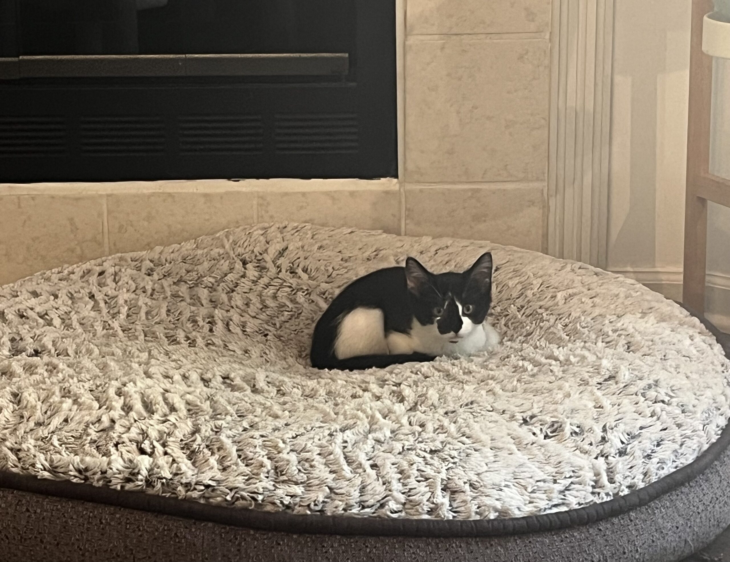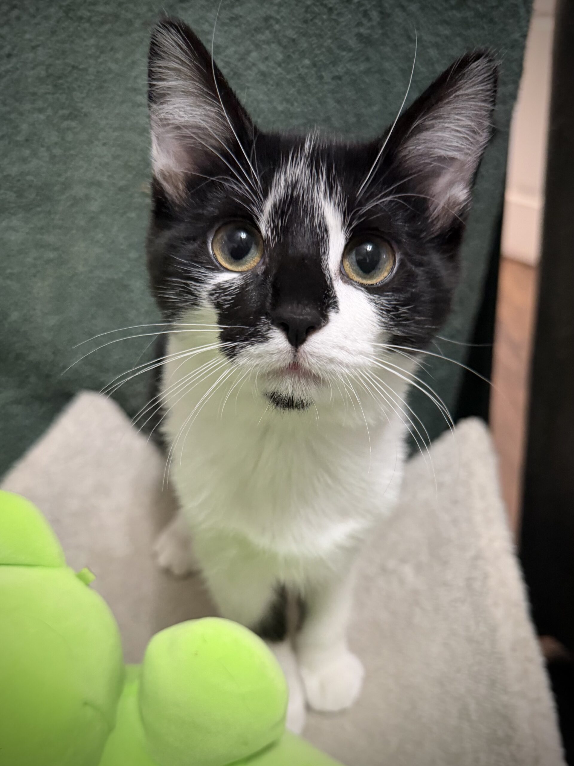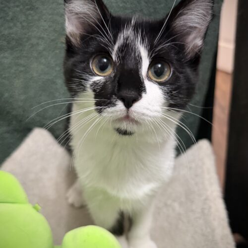 Meet SweeTango! She is one of the females from the Apple Litter found in a crawlspace. She has been thriving ever since and is now a calm, gentle kitten who gets along with her siblings as well as the resident dog - but humans are her favorite, especially when it comes to bedtime cuddles.