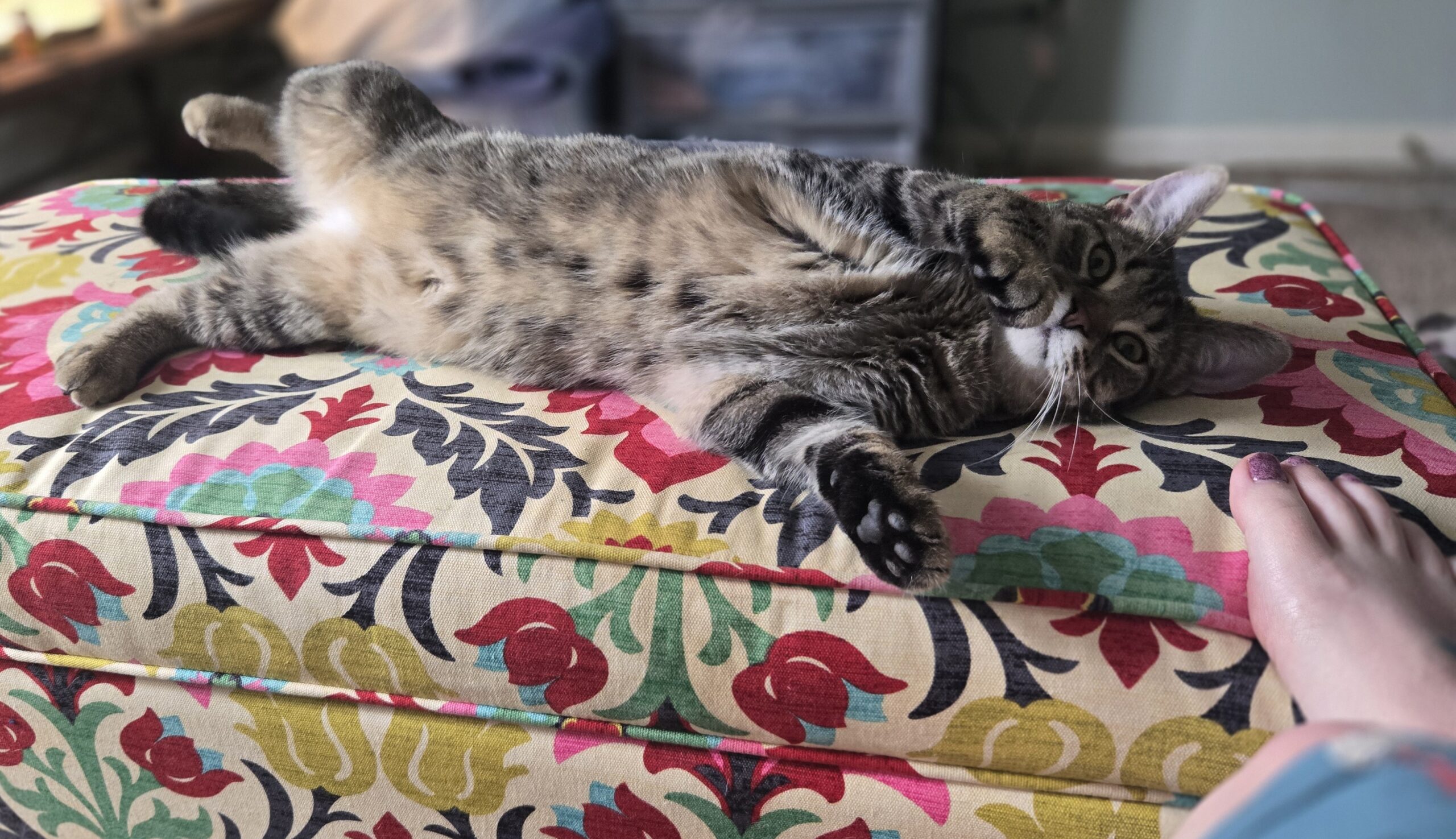 He’s playful, friendly, great with kids and other cats, and fully litter box trained.