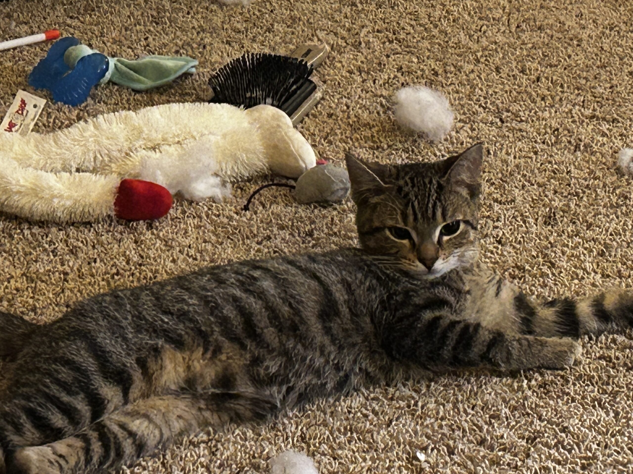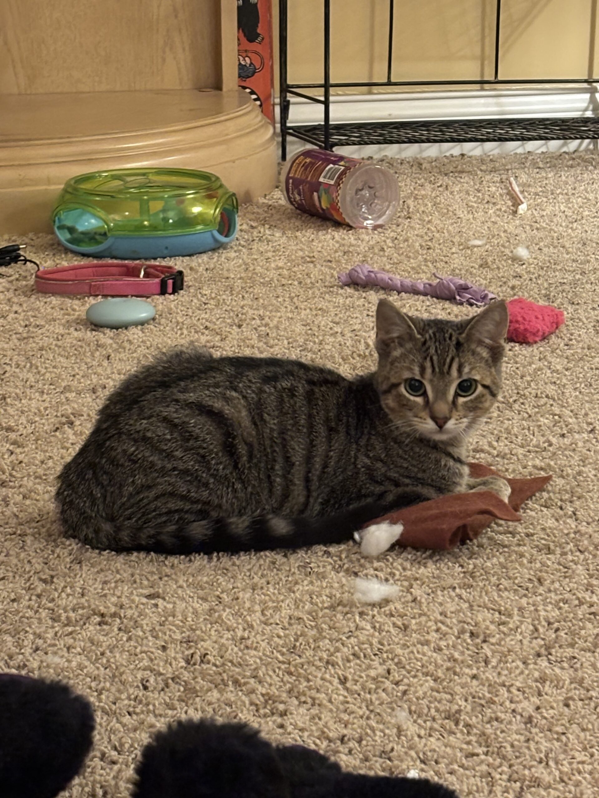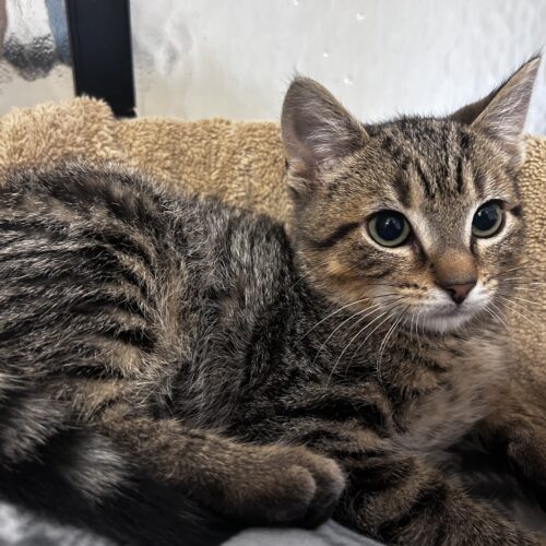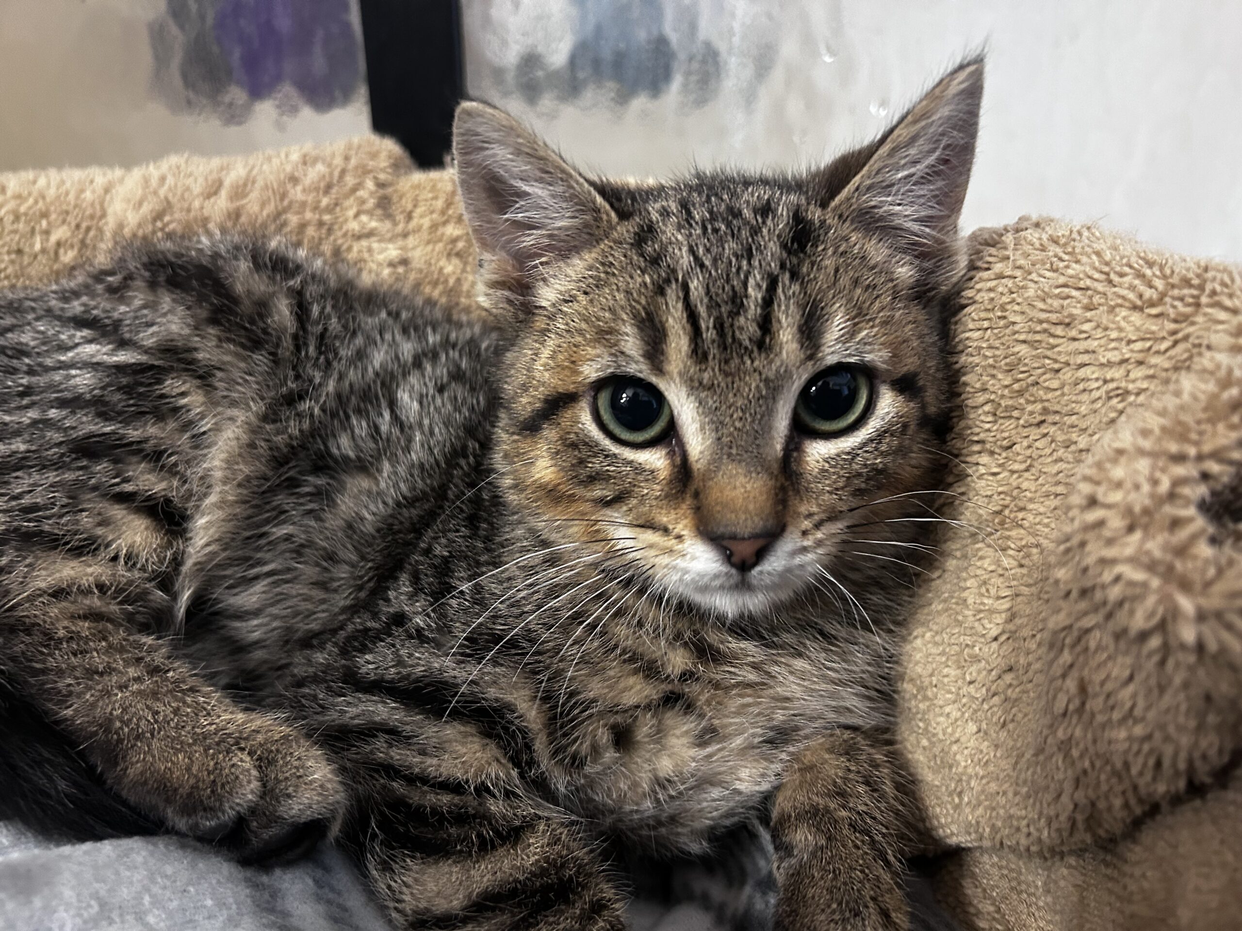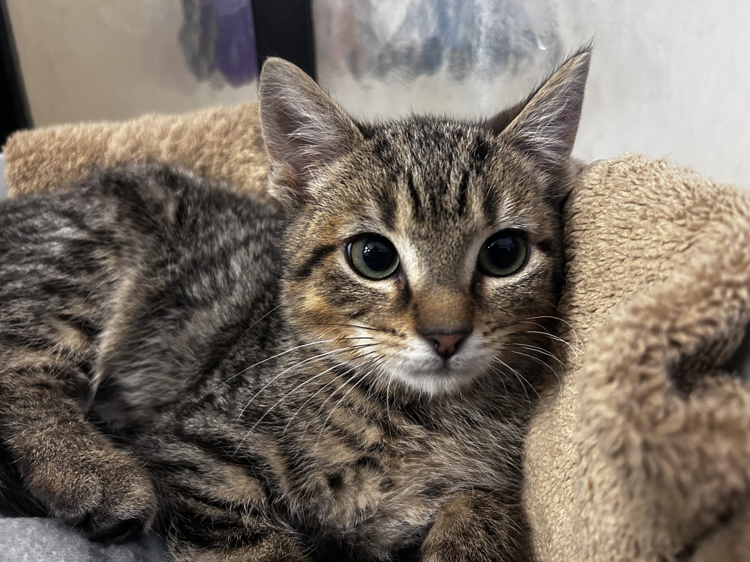 Life indoors is still new to Thug, and he’s a cautious boy as he learns to trust. Deep down, though, he longs for affection and a family who will give him the time and patience to blossom. With love, he will grow into the carefree, confident kitten he was always meant to be.