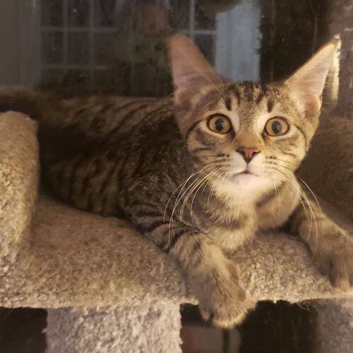 Hello! I’m Timber, a wild-at-heart, fun-loving tabby boy bursting with personality. If you’re looking for a cat who brings energy, excitement, and endless entertainment, I might just be your perfect match!