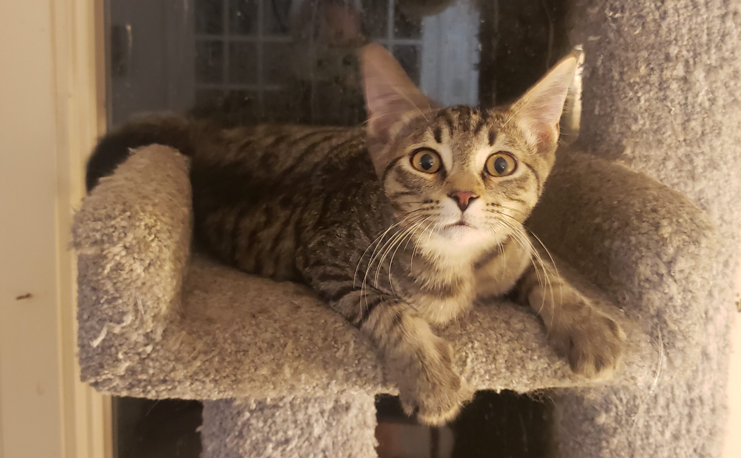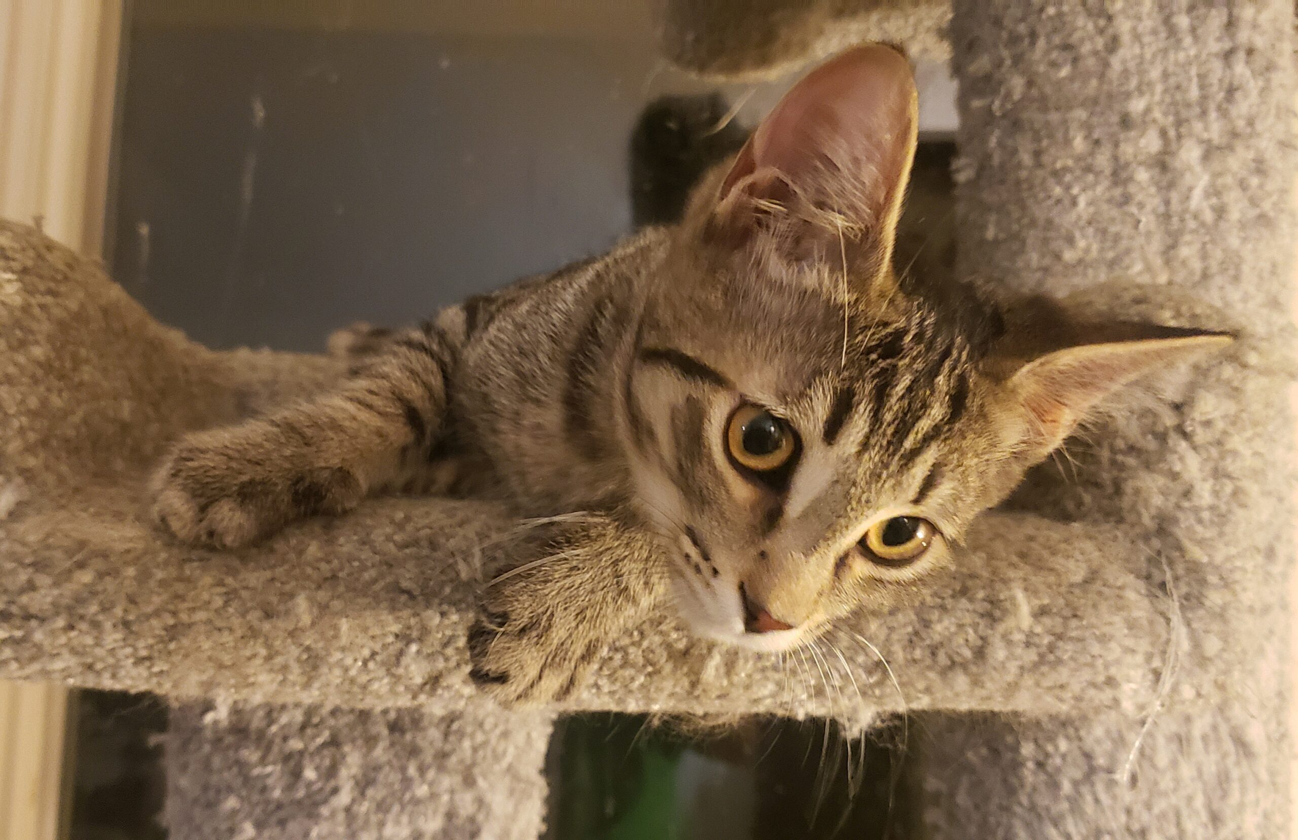 My dream home? One that’s ready for a high-energy teenage kitty who thrives on interactive play and stimulation. Bonus points if you’ve got a sibling-sized hole in your heart and want to adopt me with Verona—we’re an adorable, nap-time snuggle duo and amazing playmates.