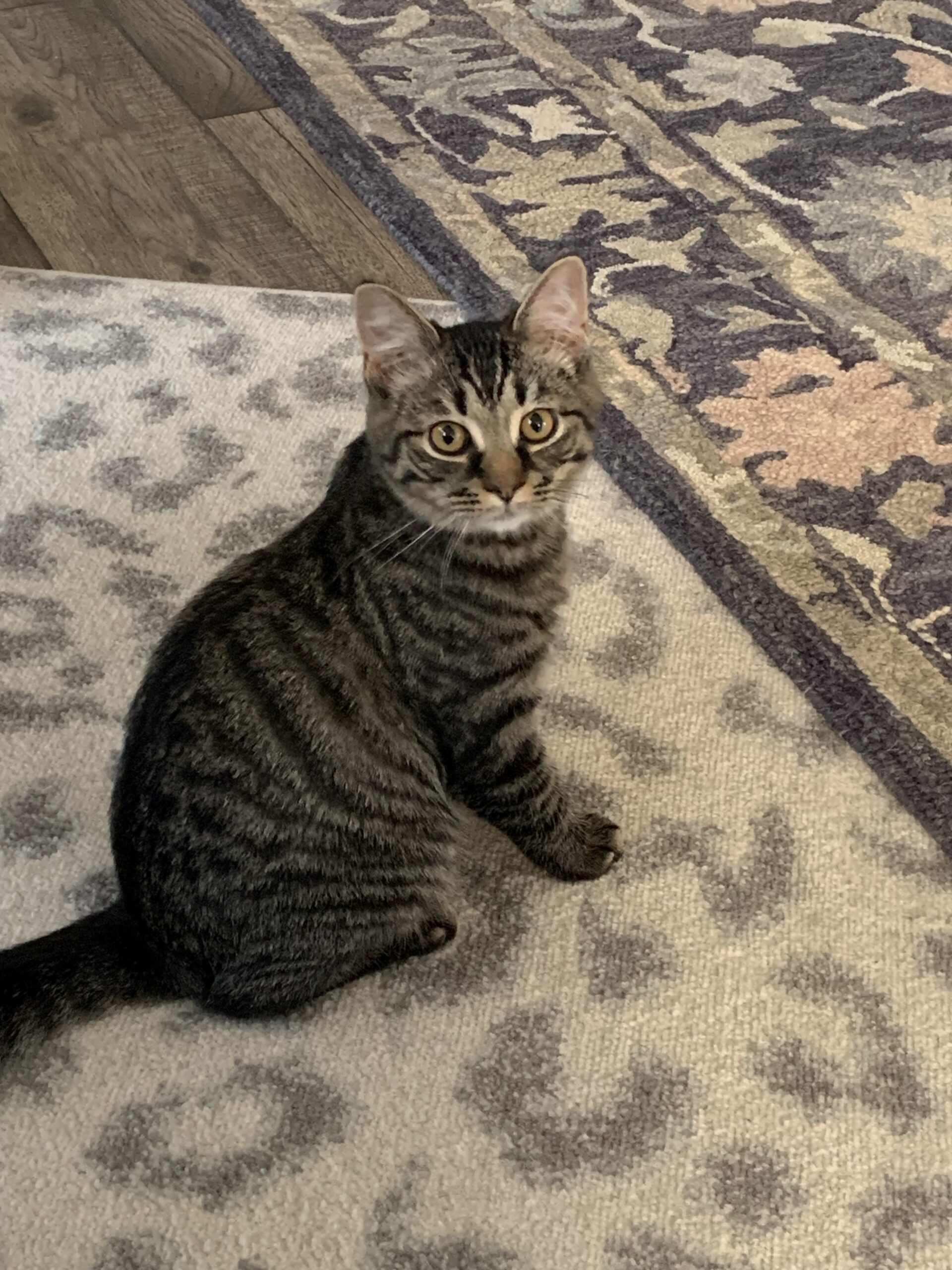He’s happiest when he’s busy, whether that’s tumbling with a buddy or curling up for a nap after a big play session. He would do great in a home with another young cat or kitten to keep up with his playful energy.