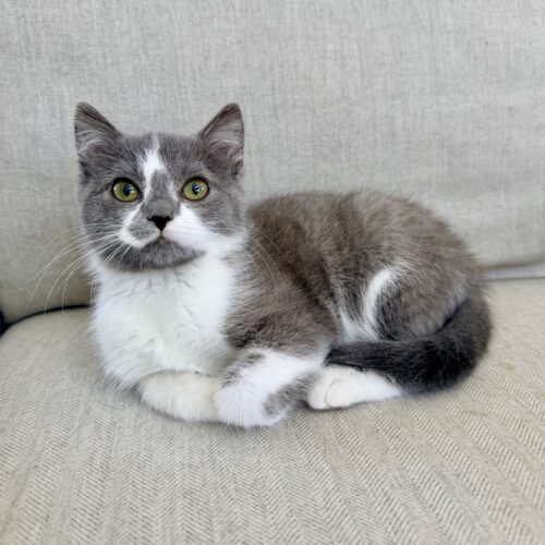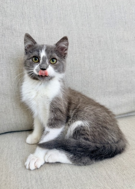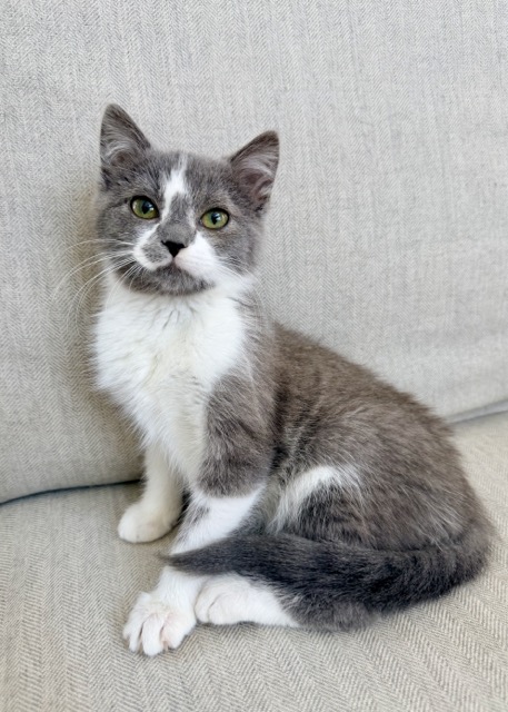 Just like her champion namesake, Venus is a gentle star in the making. This beautiful grey-and-white girl is as soft as a cloud, with a quiet sweetness that melts hearts. Venus and her siblings, Serena and Andre, were found outside in the cold before landing at a local shelter and then finding safety with ARPO. Life indoors is still new to her, but she’s been studying hard in “socialization school” with her foster family and is growing braver every day.
